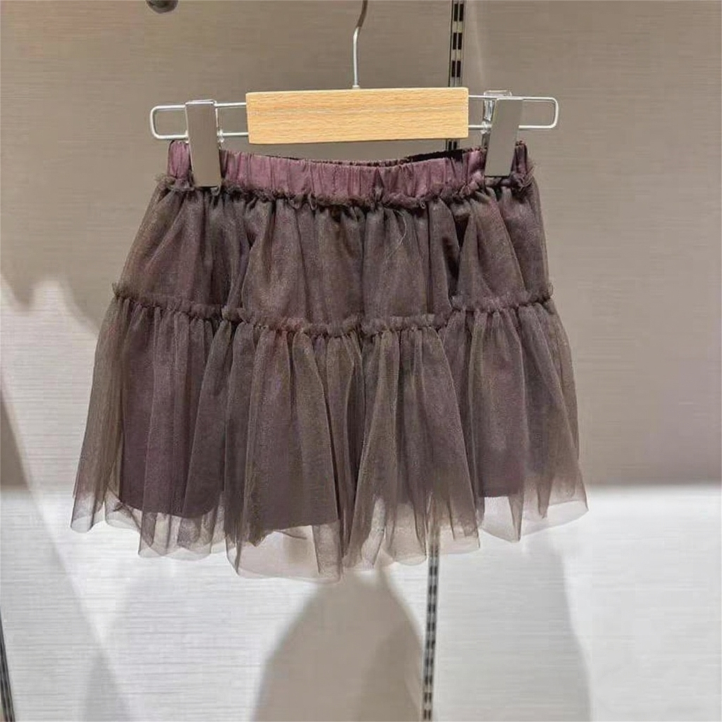 童装定制春秋新款女童经典纯色网纱拼接半身裙公主蓬蓬裙百搭半裙