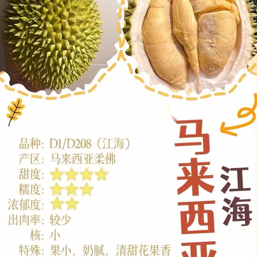 北马榴【树熟液氮】马来西亚品种D208江海榴莲清甜奶香个头不大
