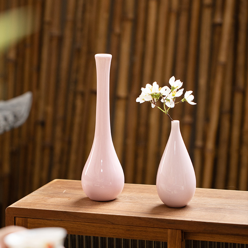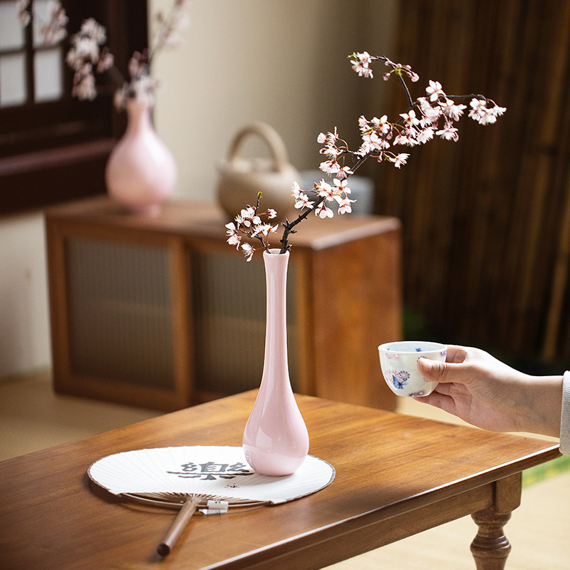 新中式陶瓷花瓶高级感插花复古粉釉花器客厅餐桌禅意装饰摆件