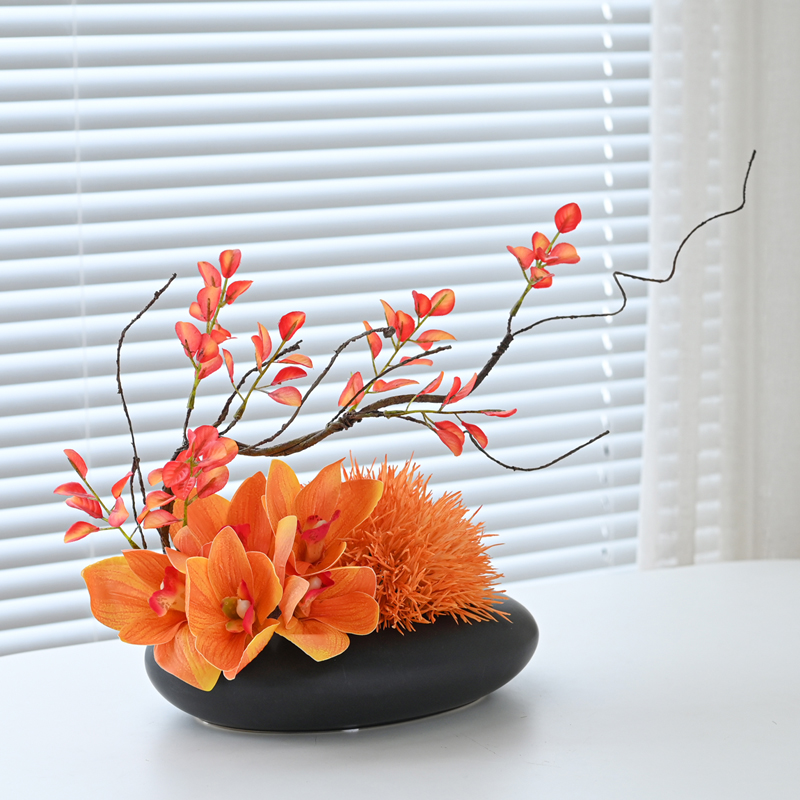 酒店大圆餐桌转盘中n间装饰餐桌花摆花桌花摆件宴会花艺会议仿真