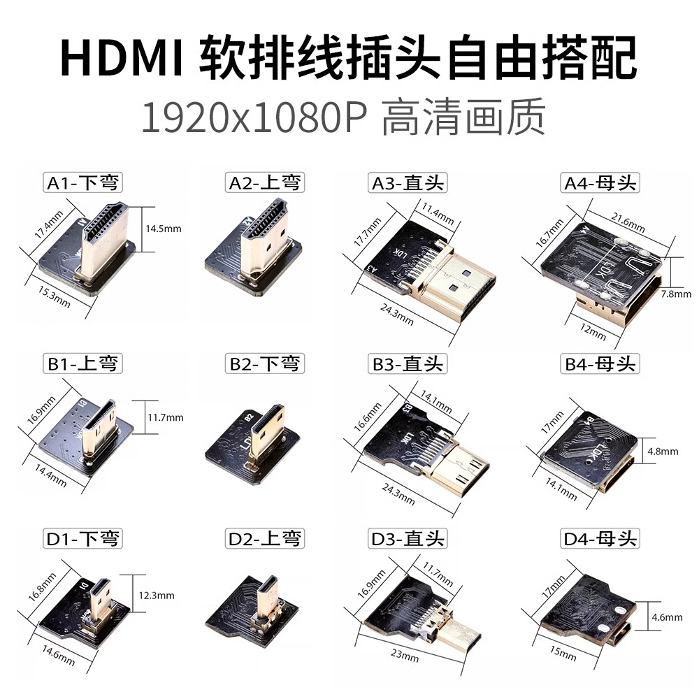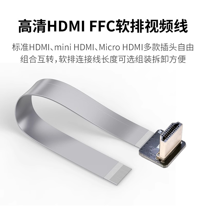 桌面HDMI线直角弯头高清软排线超薄树莓派人机图传FPC航拍视频