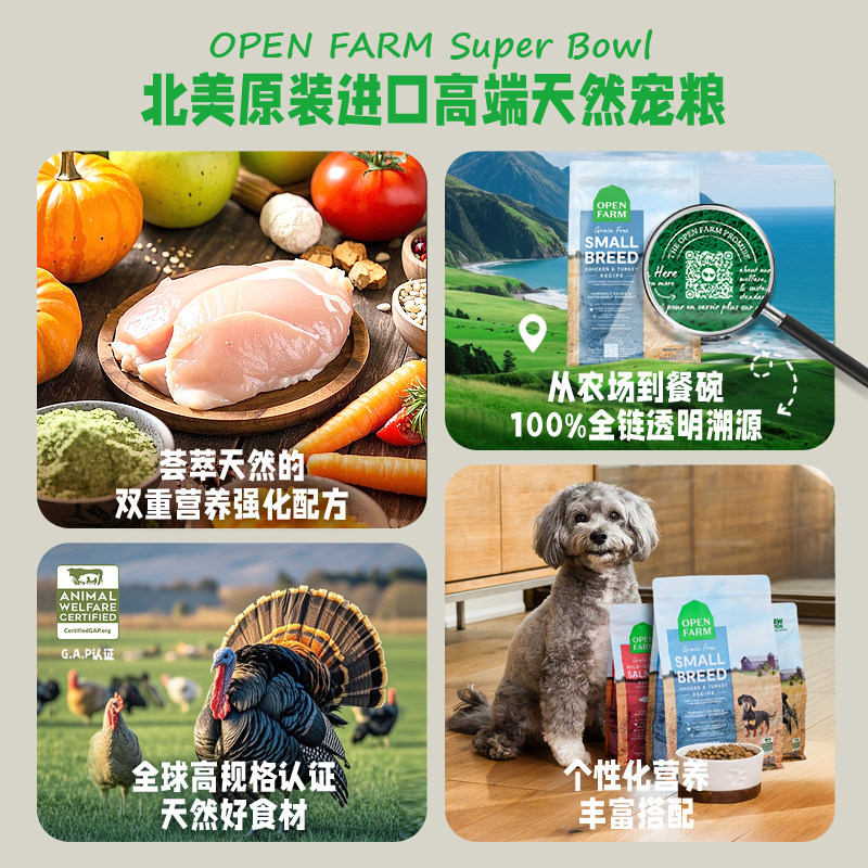 OPEN FARM自由牧场狗粮小颗粒火鸡肉无谷小型犬比熊泰迪博美专用
