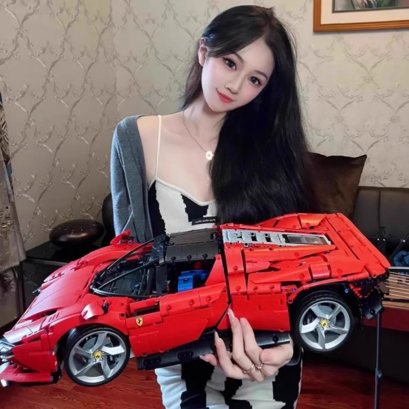 新款法拉SP3利跑车积木男孩拼装玩具高难度汽车机械组装模型礼物