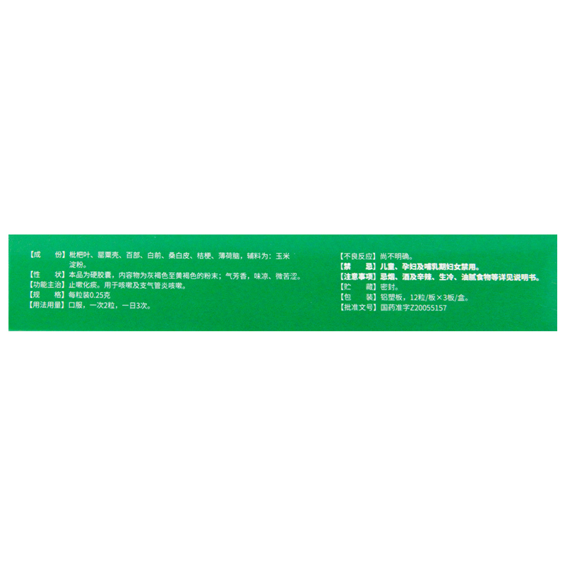 【神奇】枇杷止咳胶囊0.25g*36粒/盒咳嗽支气管炎止咳咳痰