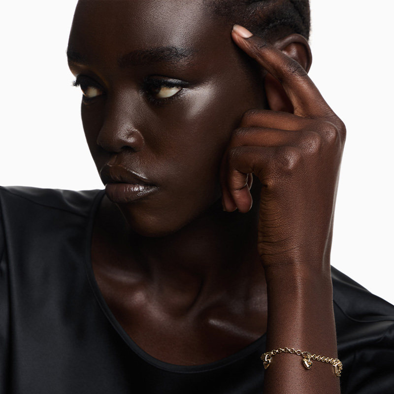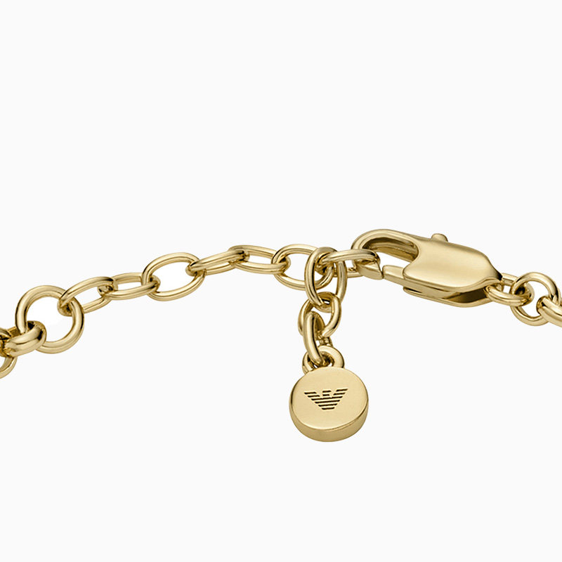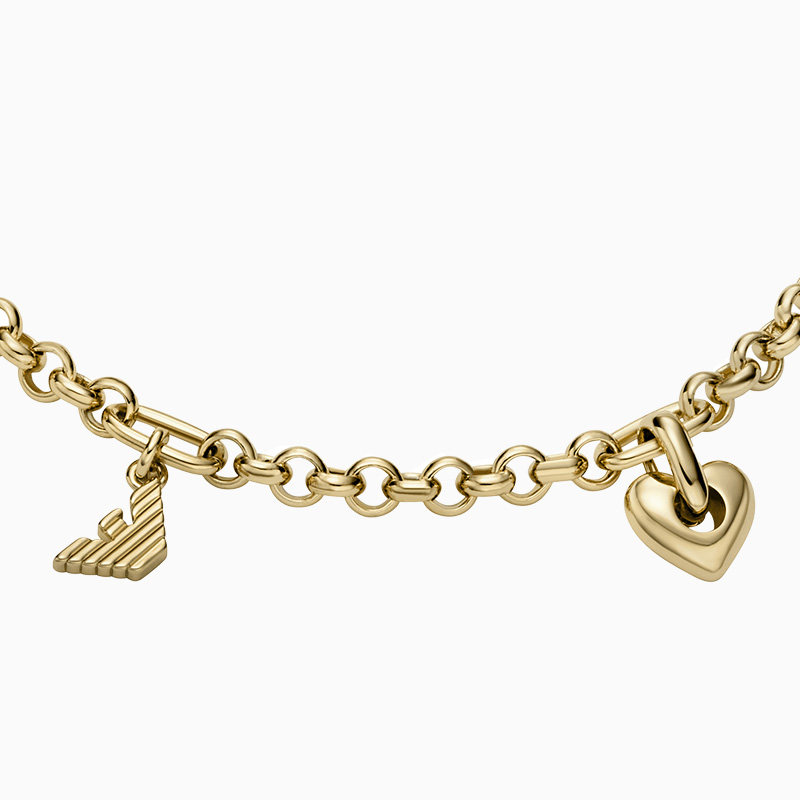 EMPORIO ARMANI/阿玛尼女士心形吊坠串联复古金色龙虾扣手链官方