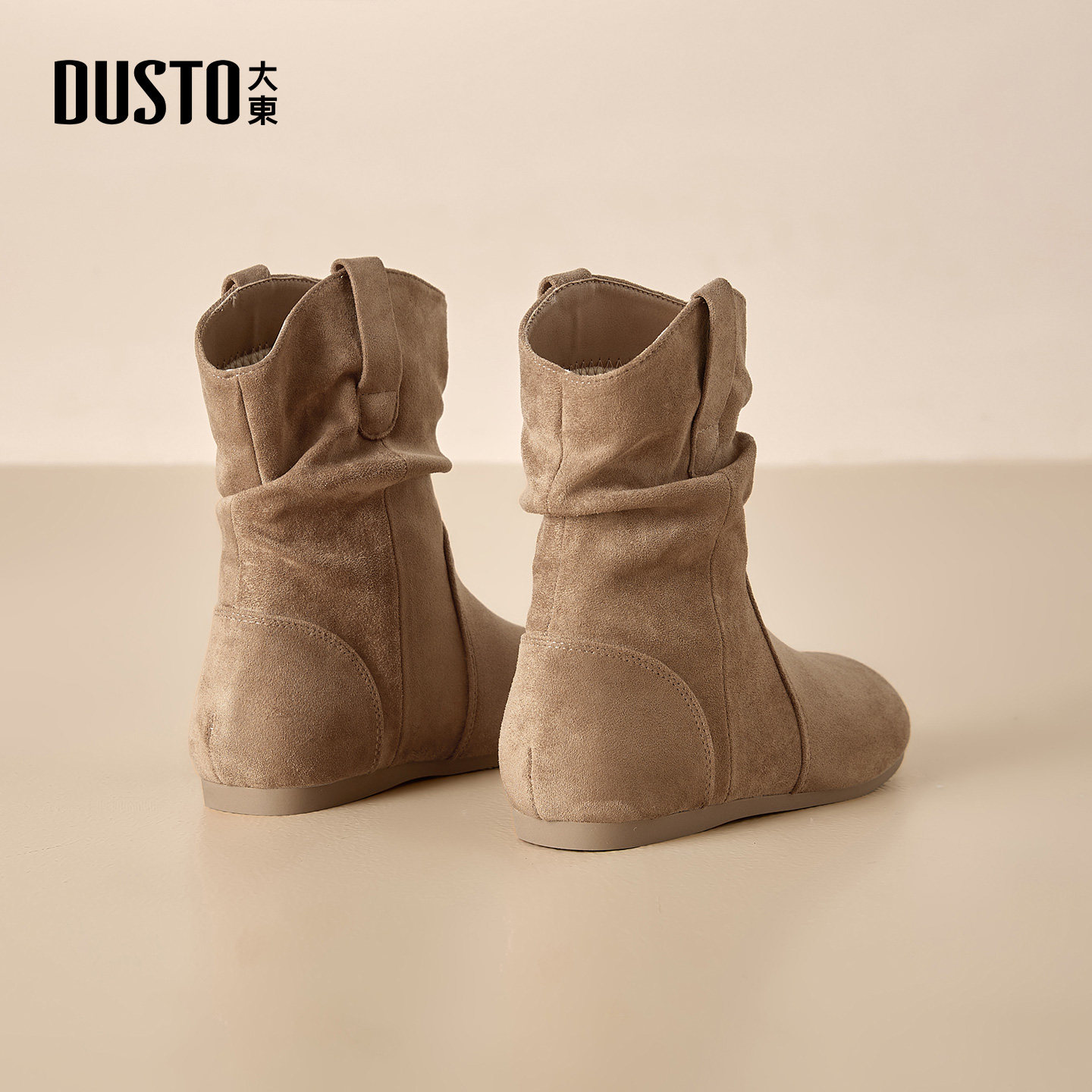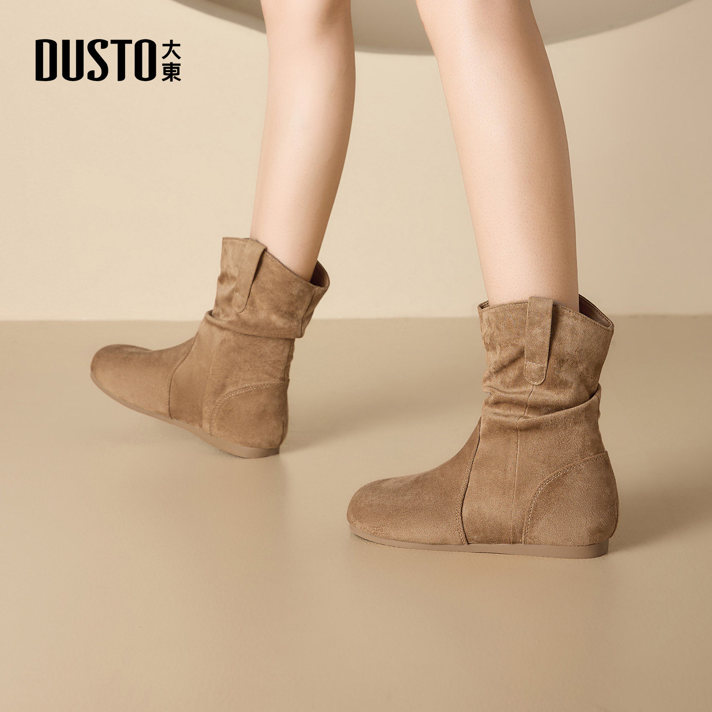 大东时装靴女鞋2025冬季新款美拉德堆堆靴棕色平底圆头舒适中筒靴