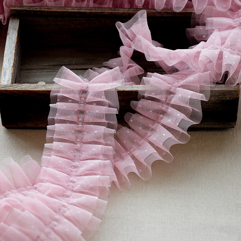 8CM宽波点工字褶皱蕾丝小花边 手工DIY洛丽塔服饰裙子装饰白色