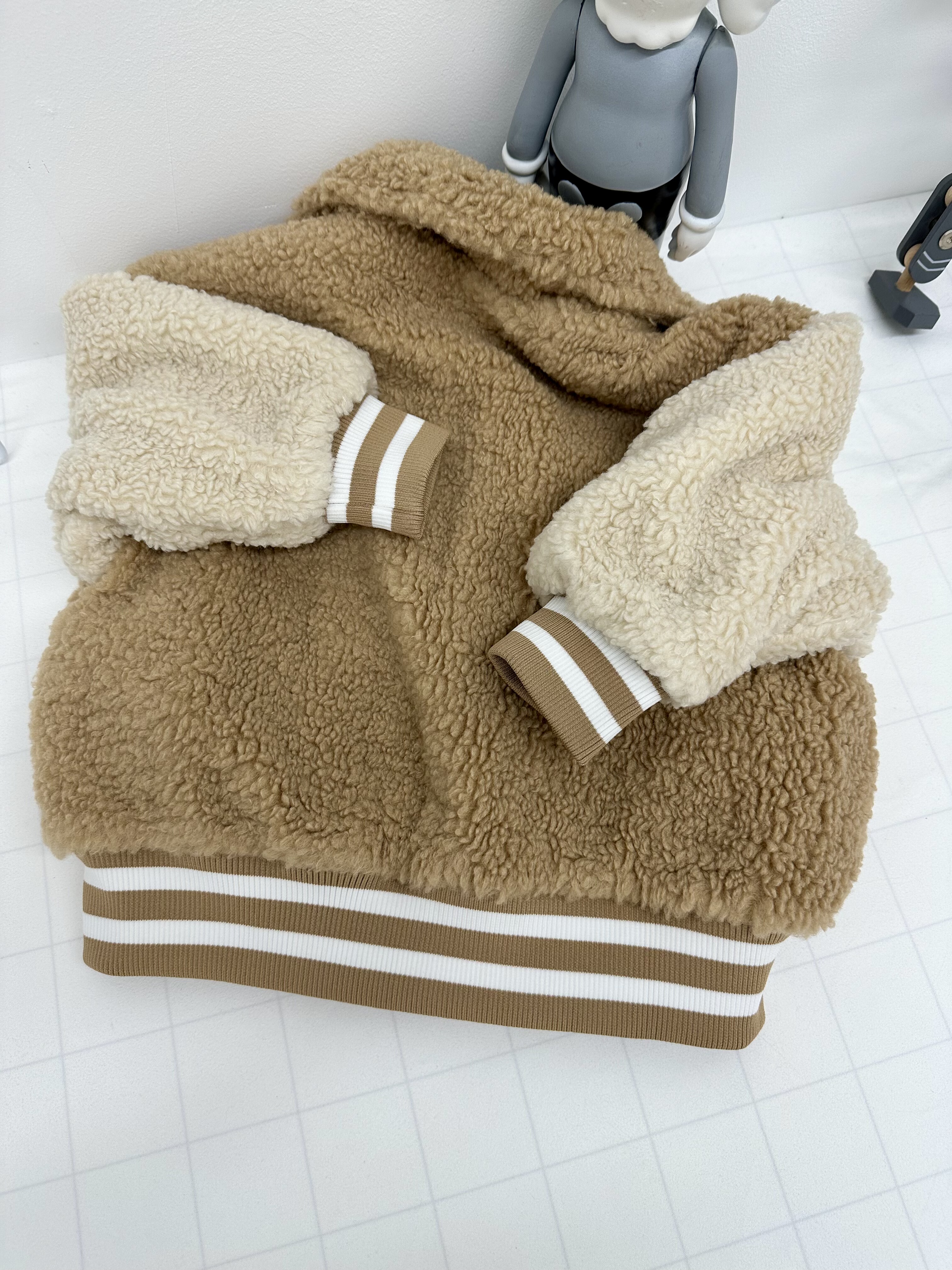 朋友,男童卡其色毛毛棒球服外套棉服 码数足 吊559 2305