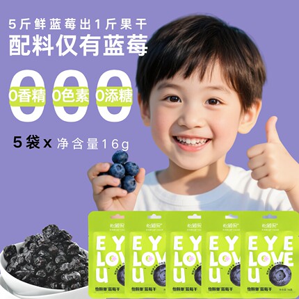 怡颗果纯蓝莓干16g*5袋无添加便携包装随享装儿童零食蓝莓果干
