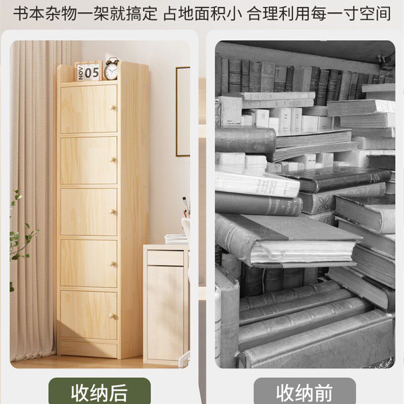 速发书木书架室物架落地简易客厅卧室儿童收纳学生书房办公置桌面