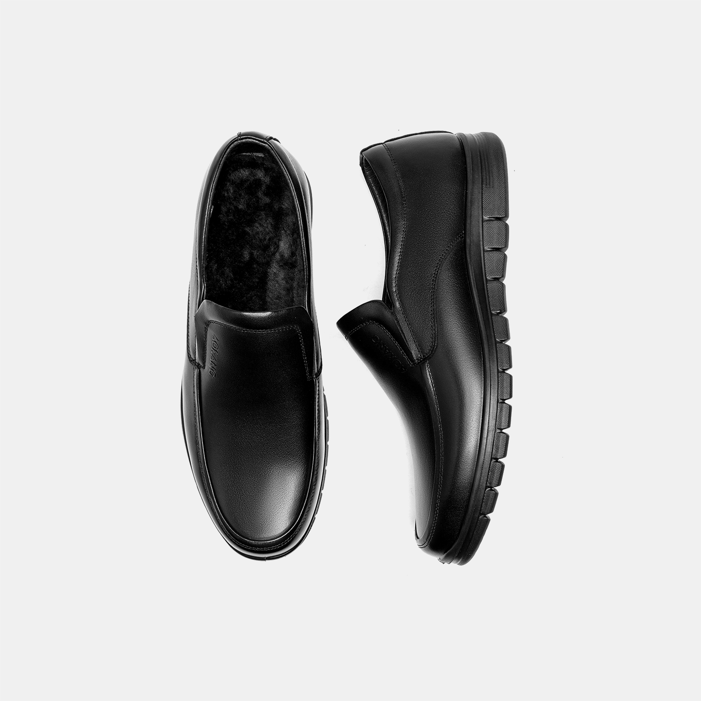 奥康 2025冬季新款男鞋乐福鞋软底一脚蹬加绒保暖豆豆鞋时尚单鞋