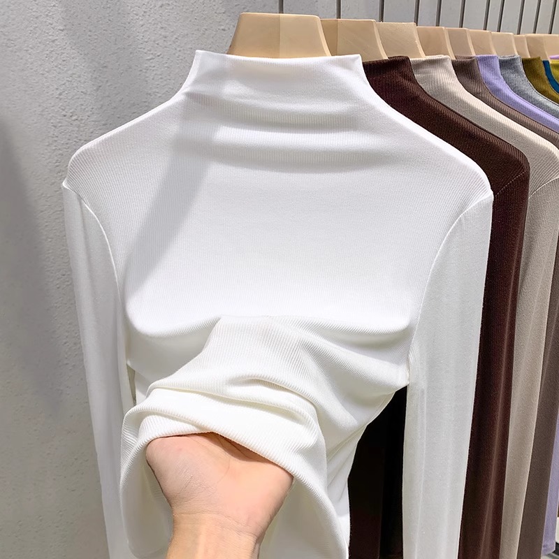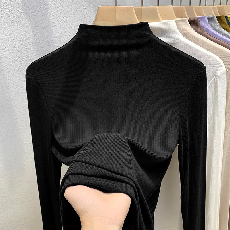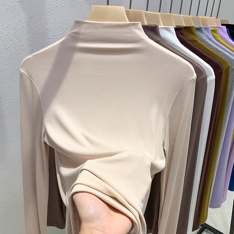 半高领螺纹莫代尔打底衫女春秋冬季内搭修身显瘦大码长袖T恤上衣