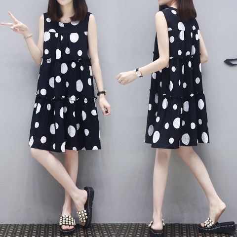 外贸女装出口淘宝爆款特价版夏季宽松波点显瘦包臀无袖背心连衣裙