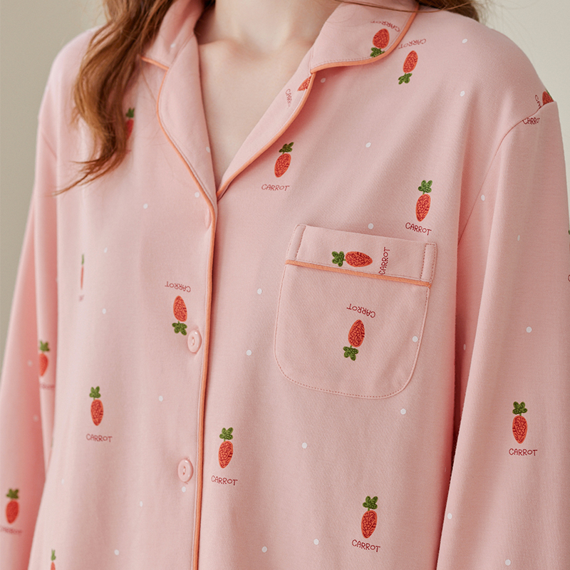 芬腾睡衣女春秋季纯棉长袖开衫套装甜美女士宽松加大码全棉家居服