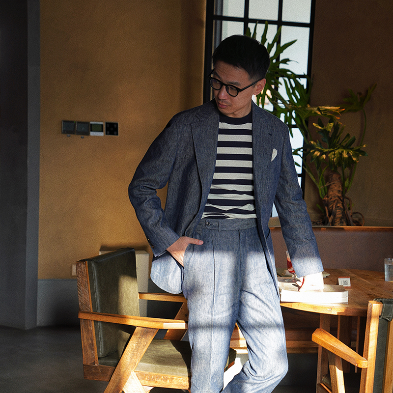 CM那不勒斯皇后牛仔工装羊毛亚麻单排意式平驳领休闲西服套装122