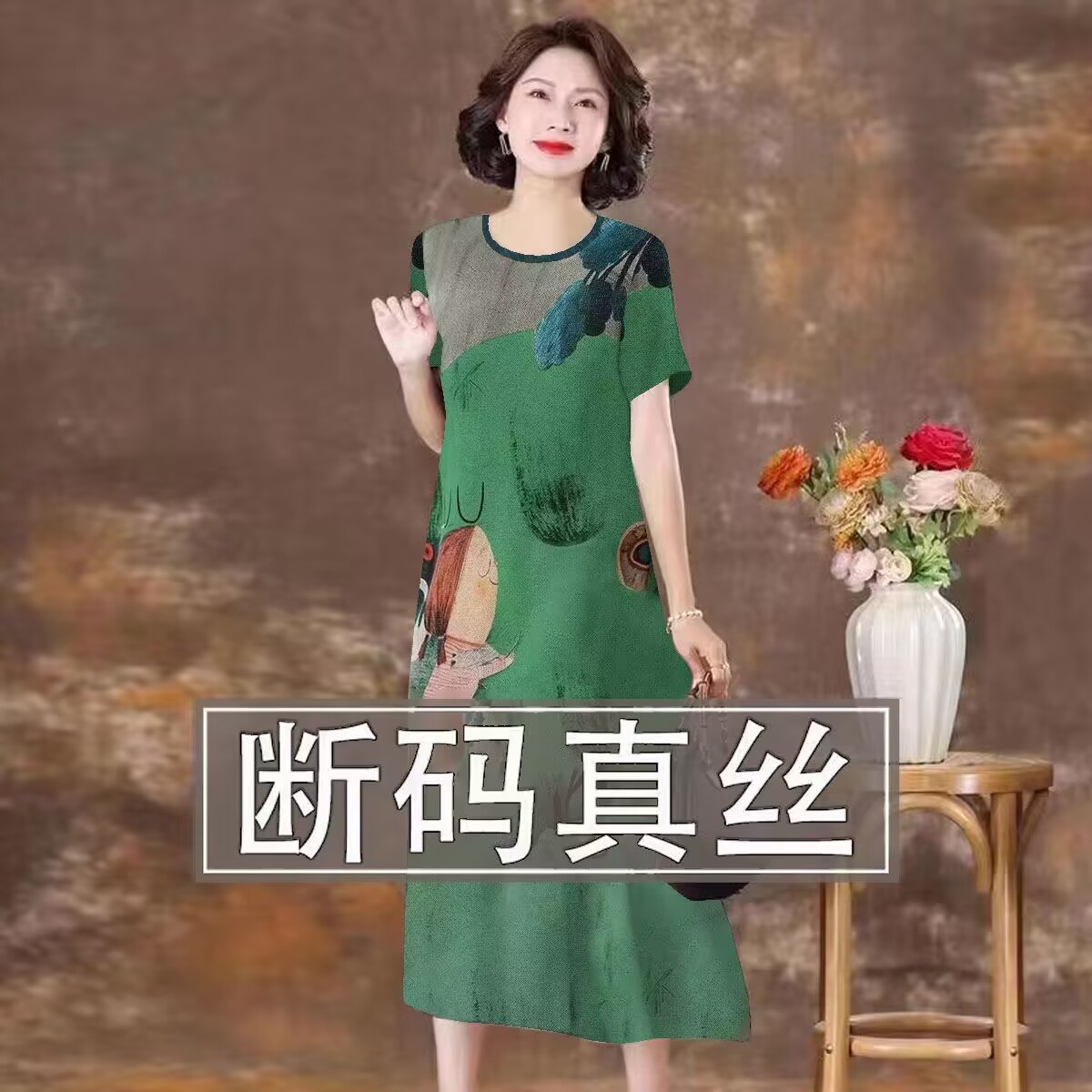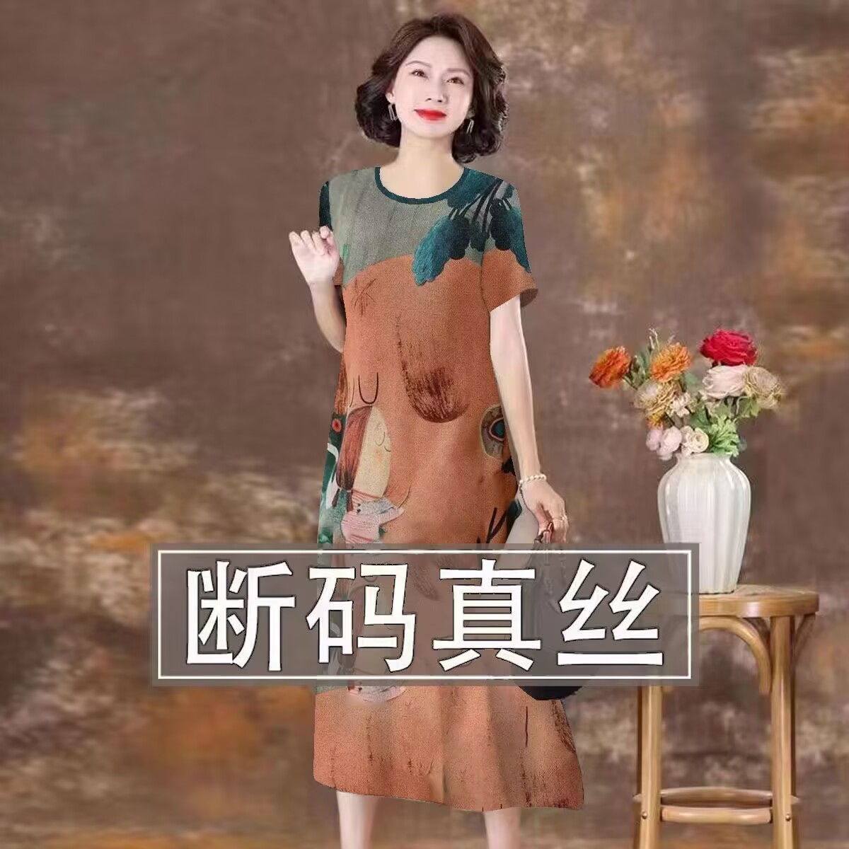 香云纱重磅真丝连衣裙女夏季2023新款宽松大码中老年妈妈桑蚕丝裙