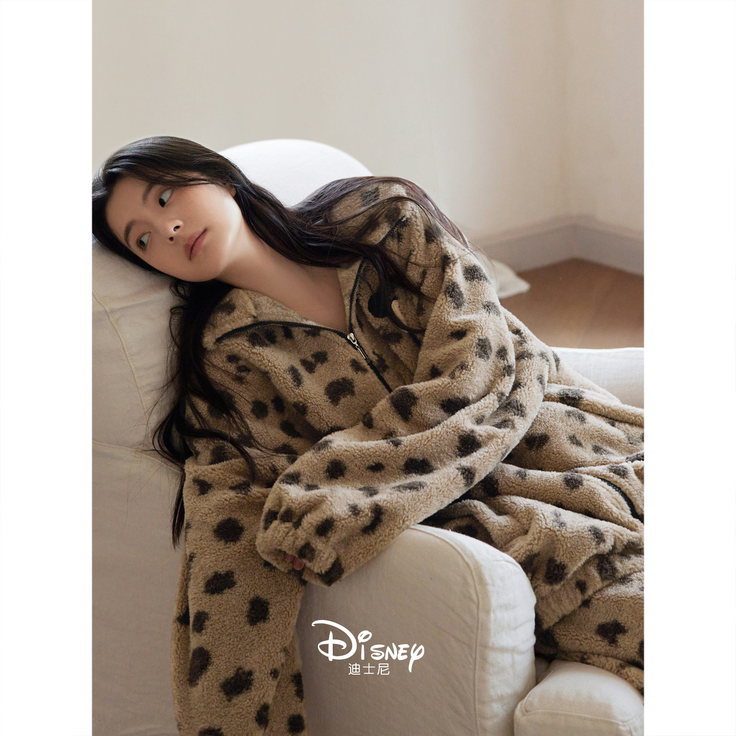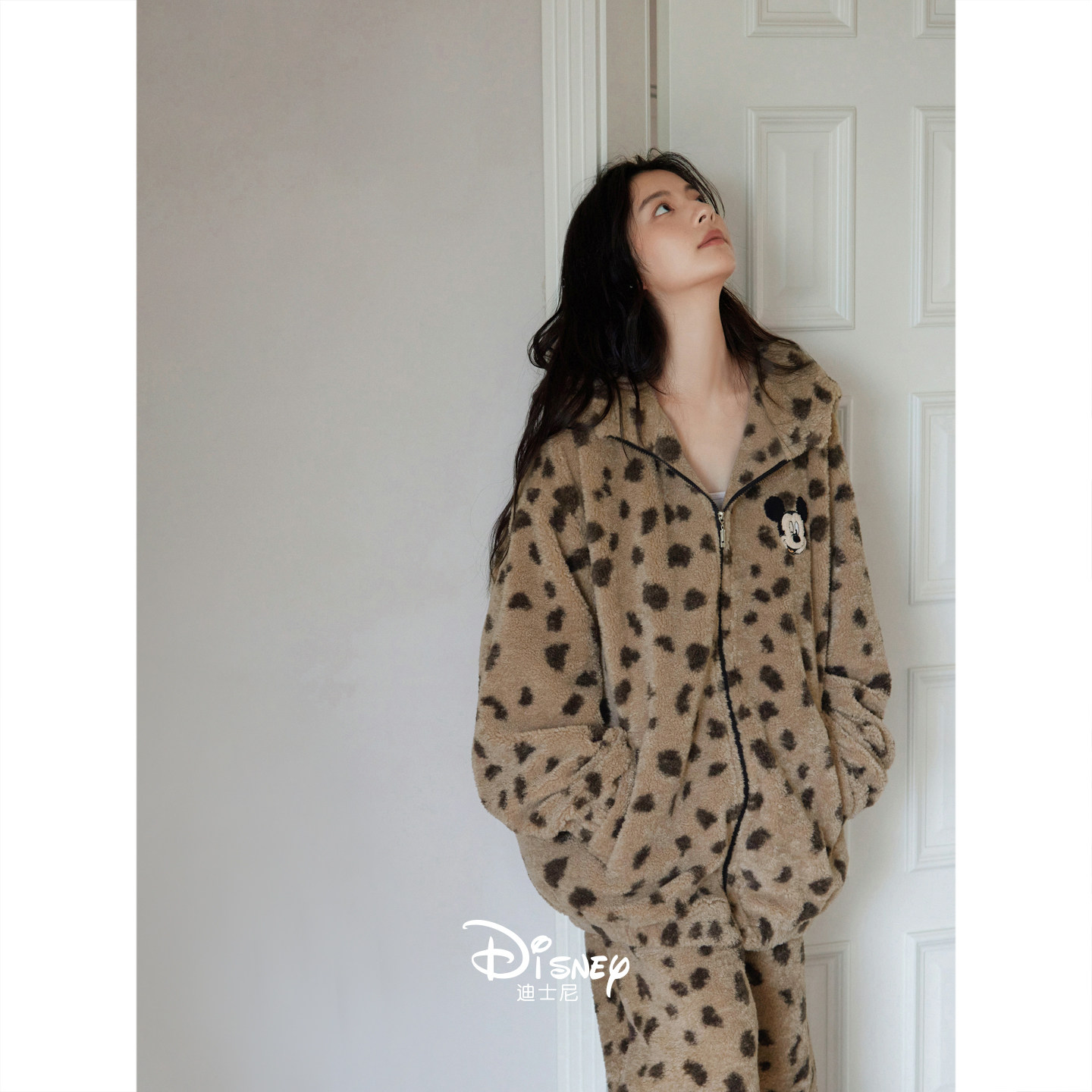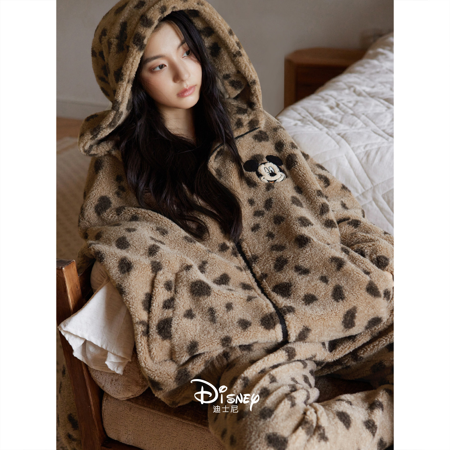 迪士尼女冬季慵懒连帽珊瑚绒睡衣