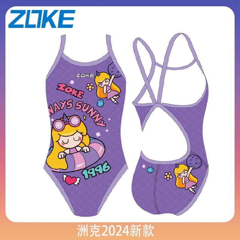 洲克2024连体三角专业竞速泳衣训练女童游泳衣女抗氯