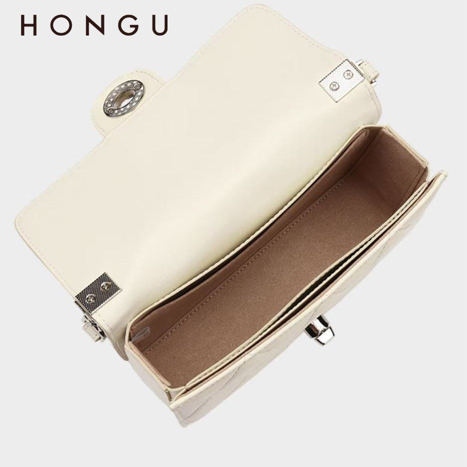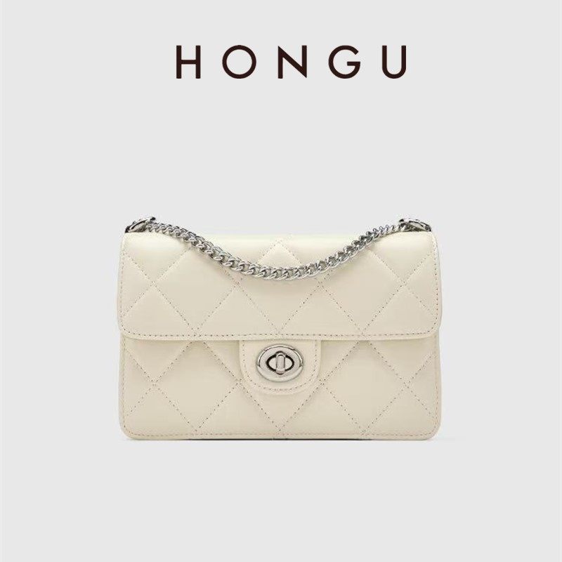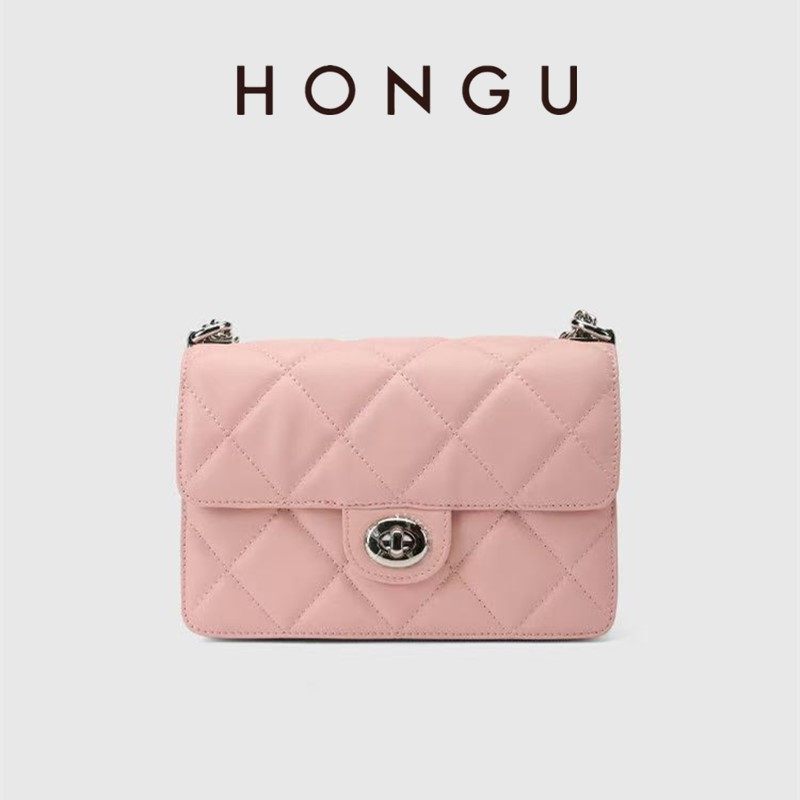 红谷正品2025新款真皮女包单肩斜挎包菱格链条高级感小香包定格