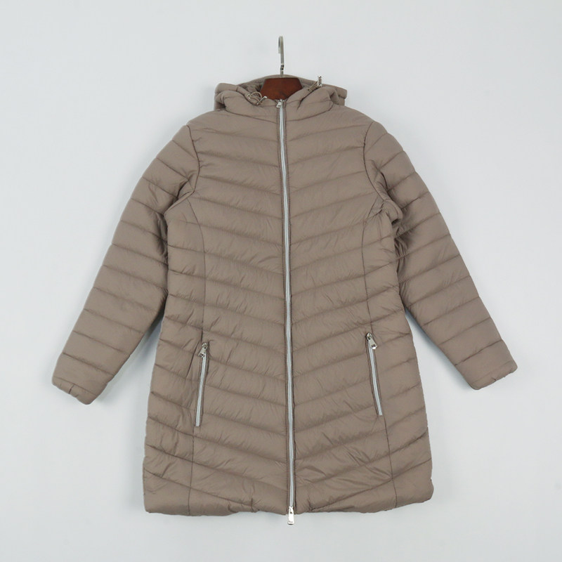 外贸欧美中长款轻薄连帽修身棉服女秋冬新款户外保暖休闲外套棉衣