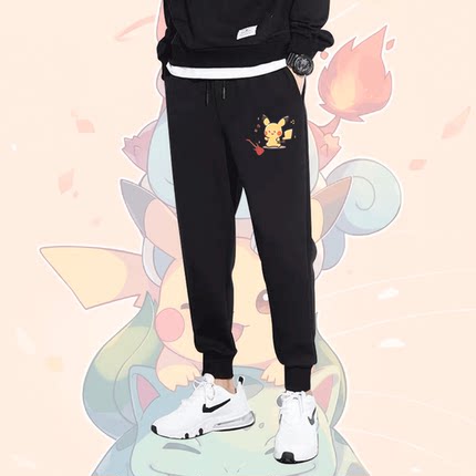 精灵宝可梦皮卡丘耿鬼杰尼龟联名音乐会休闲款运动裤卫裤定制长裤