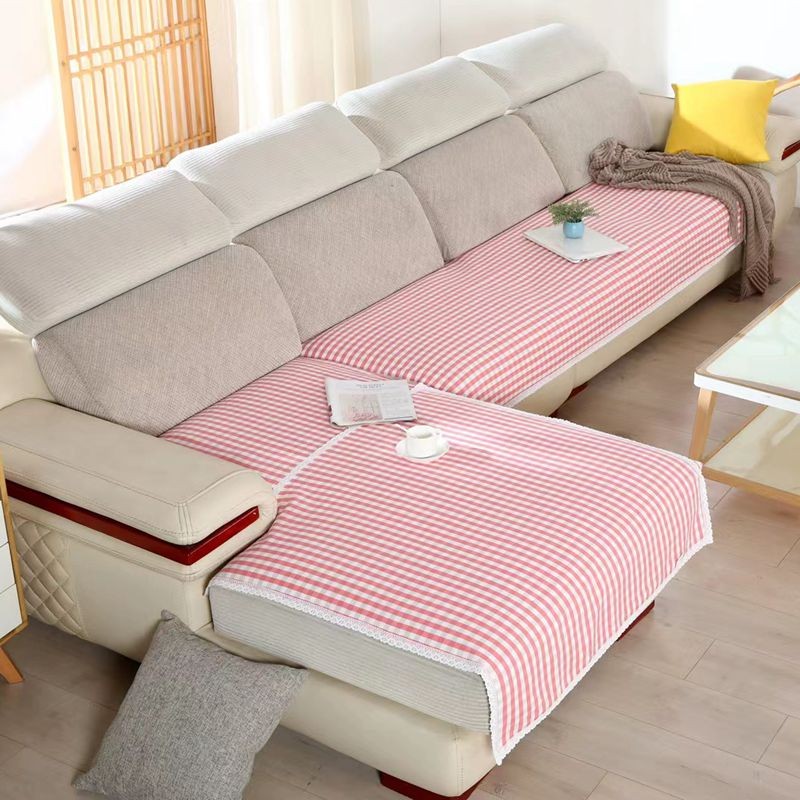 老粗布沙发垫简约加厚布艺沙发巾厚实耐用全棉沙发巾一套3件