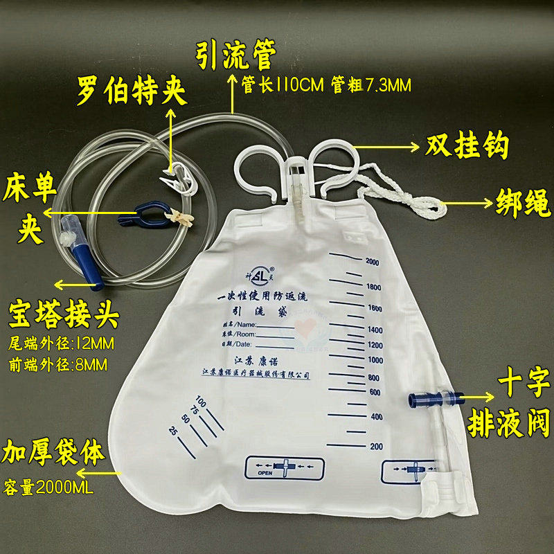 康诺神灵SK118C防逆流引流袋 接尿袋2000盐水冲洗头尿管引流尿袋