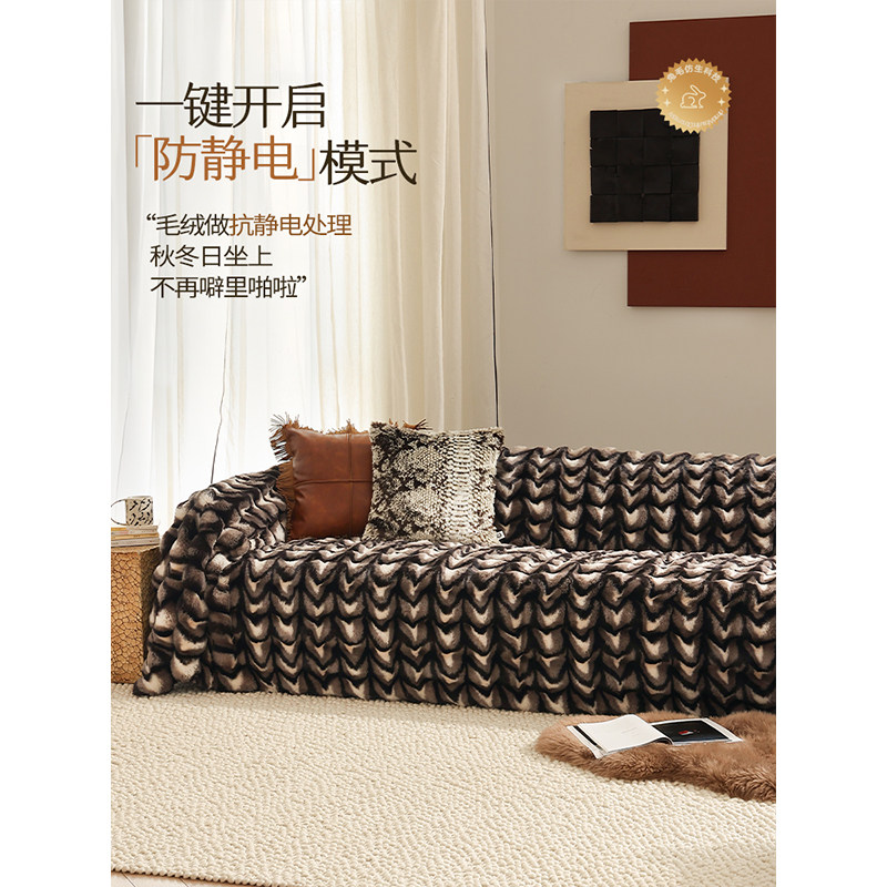兔毛绒沙发盖布冬季加厚保暖防滑高级感沙发盖巾垫布沙发套罩全包