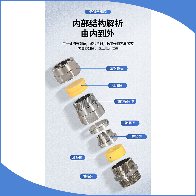 304不锈钢防爆铠装格兰头电缆密封接头BDM防水紧固M型穿线填料函
