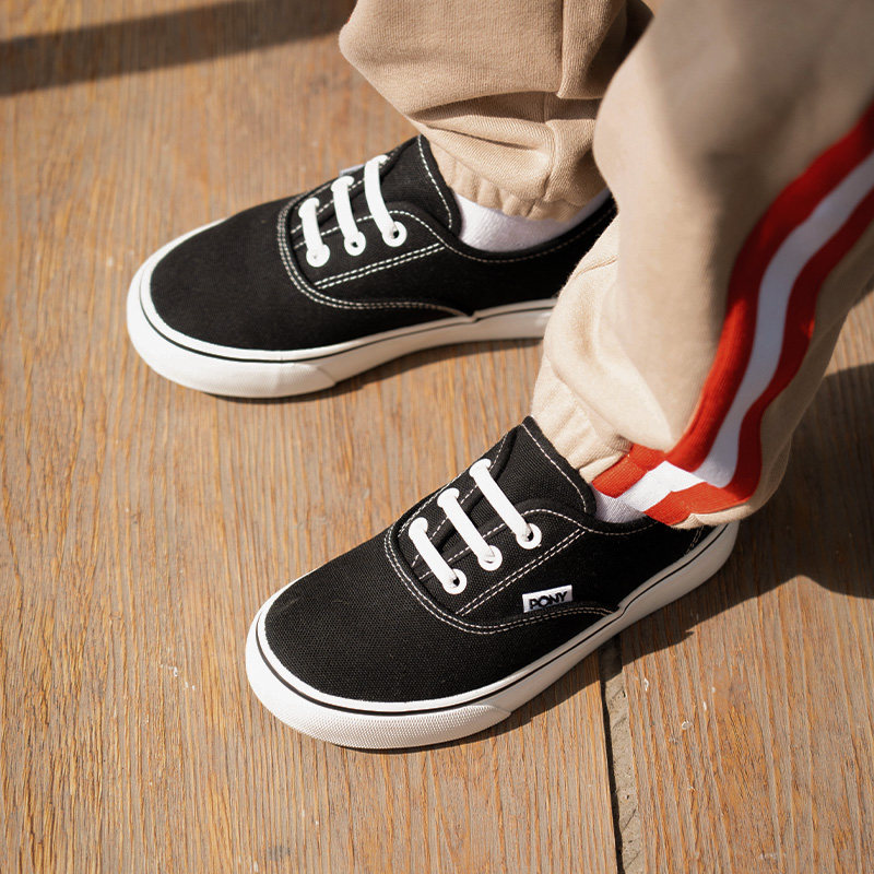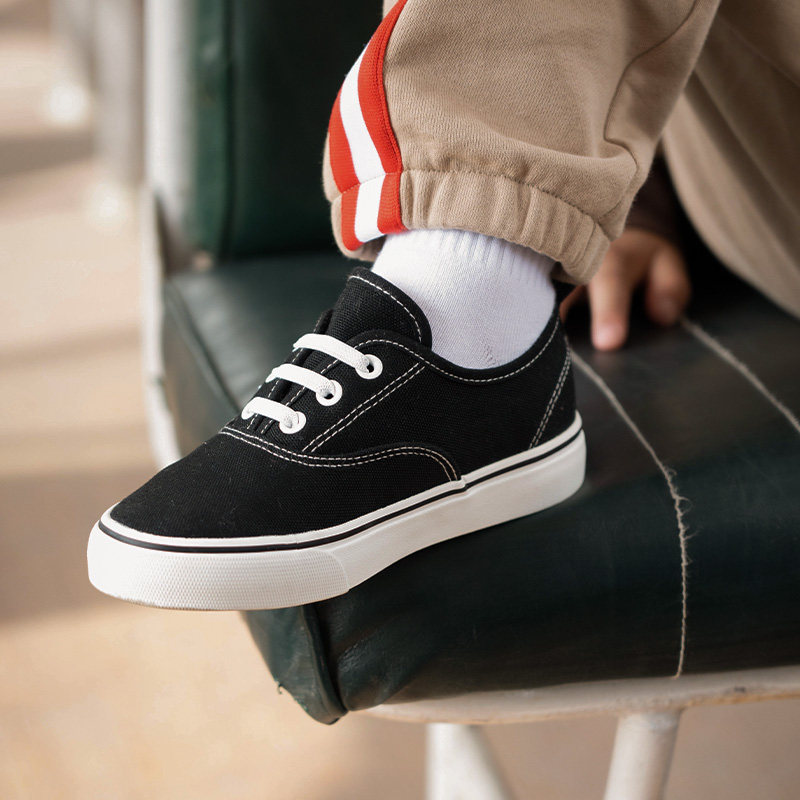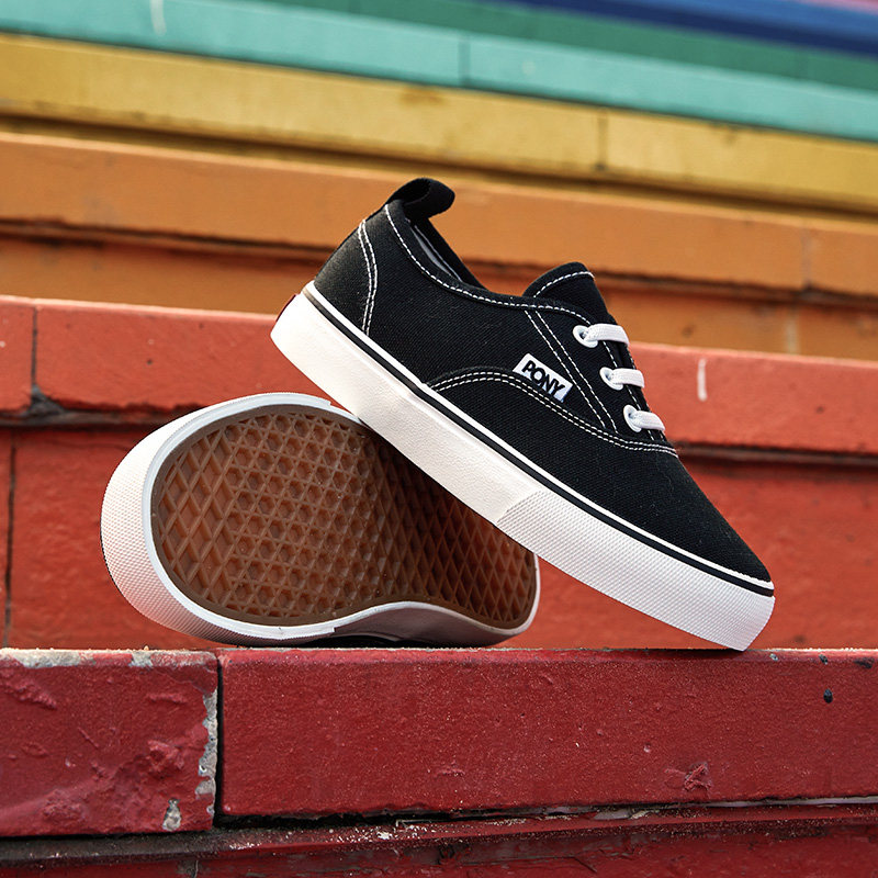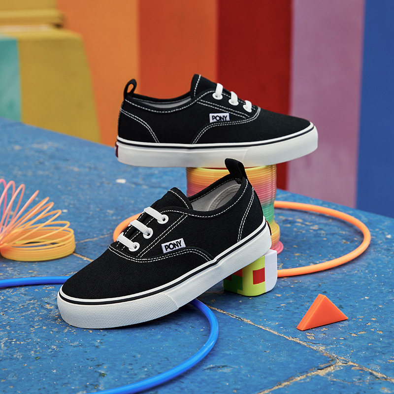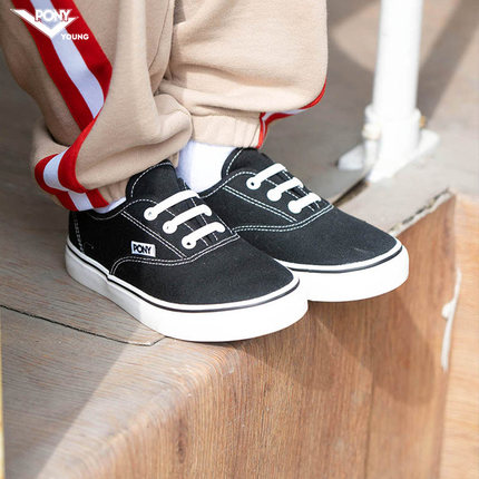 pony波尼童鞋儿童帆布鞋新款男女童运动板鞋透气软底黑色大童鞋子