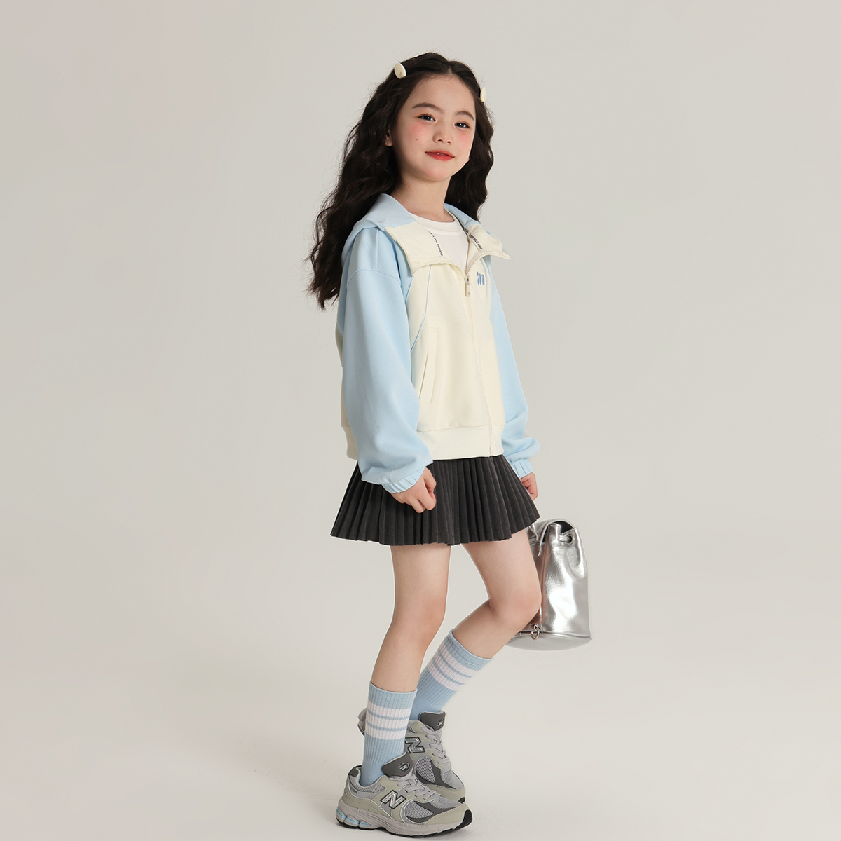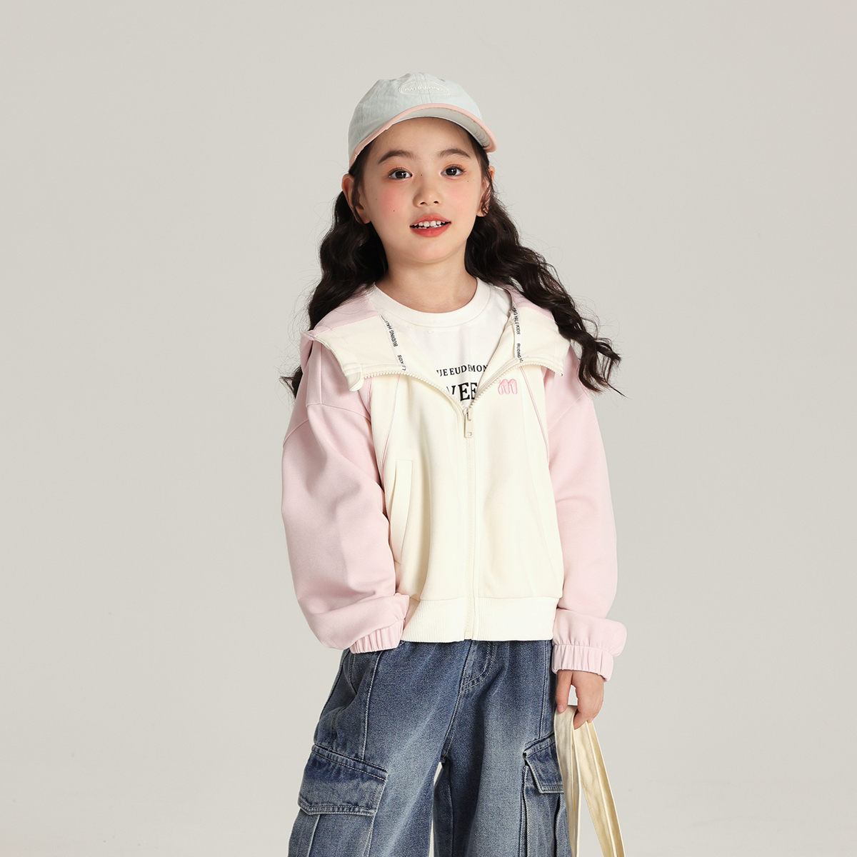 布丁哈鲁童装春装女童洋气2025春秋新款儿童拼色连帽卫衣休闲外套