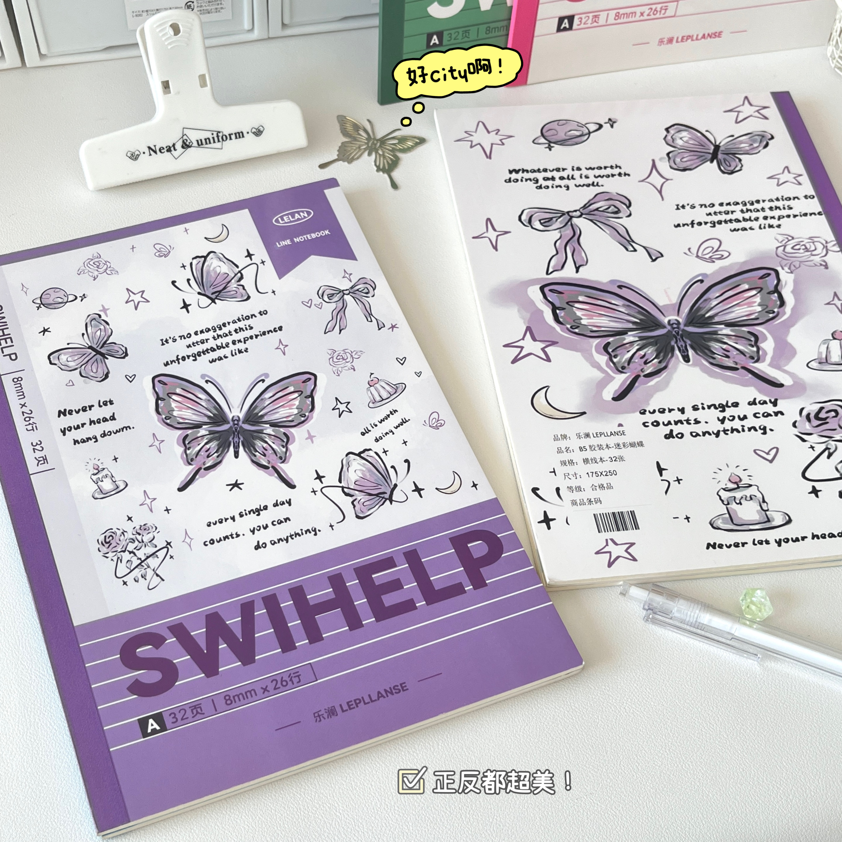 蝴蝶系列B5胶装本笔记本初中生专用日记本学生作业登记本加厚错题本ins风高颜值手帐本日程本2025新款计划本