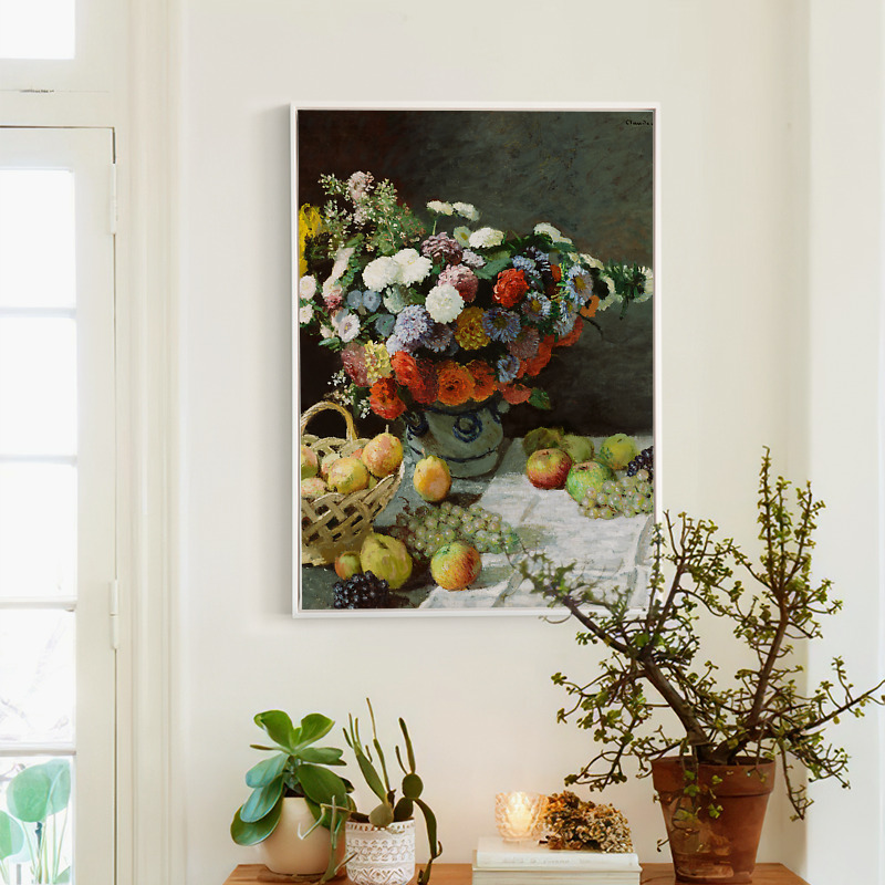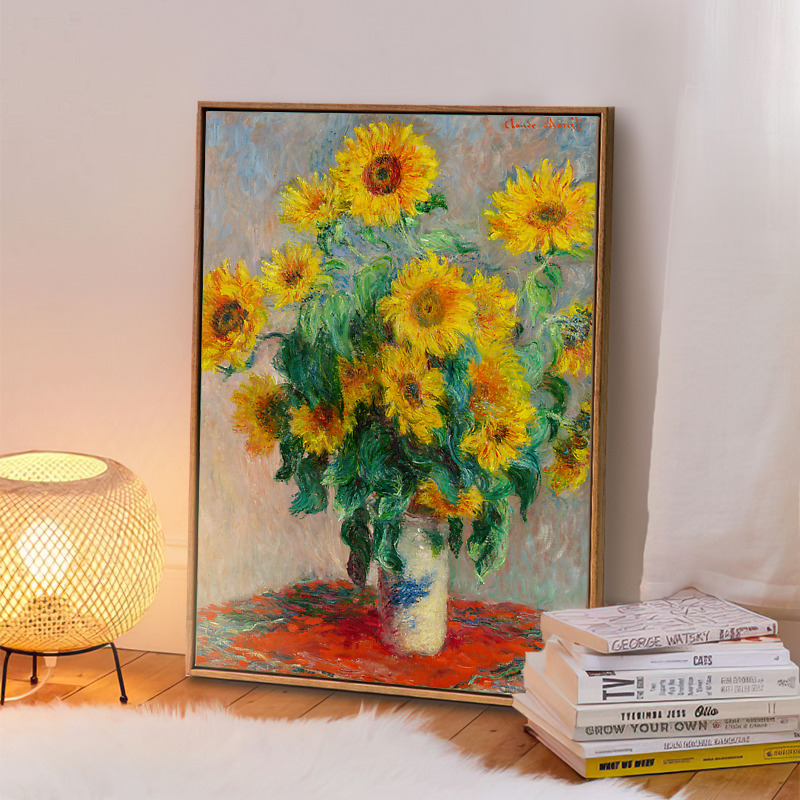 上品印画 莫奈花卉3幅 轻奢欧式油画客厅餐厅装饰画墙壁画挂画