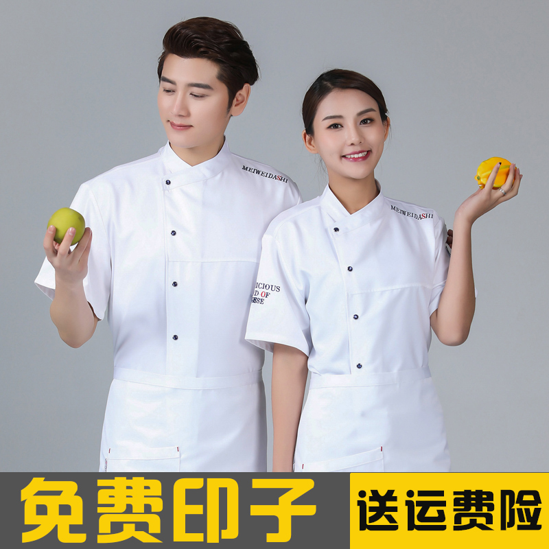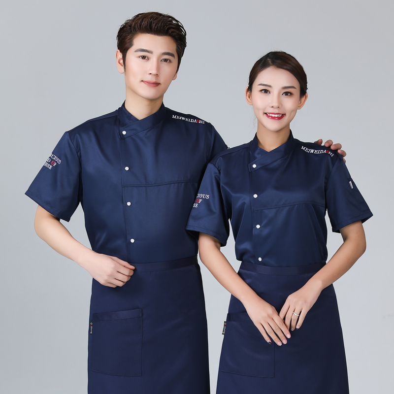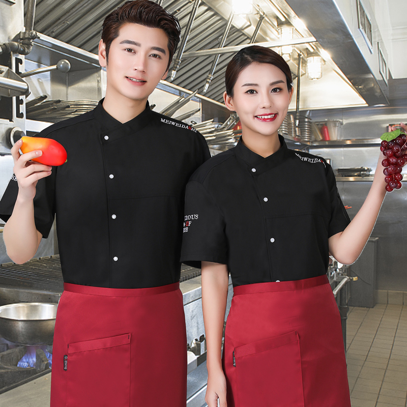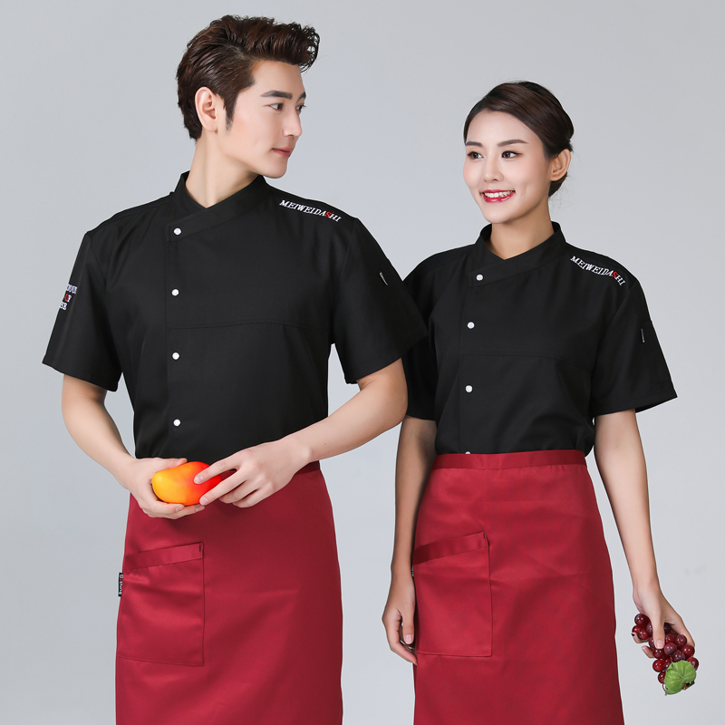 厨师服短袖黑色夏季透气薄款棉餐饮饭店西餐厅后厨师工作服男定制