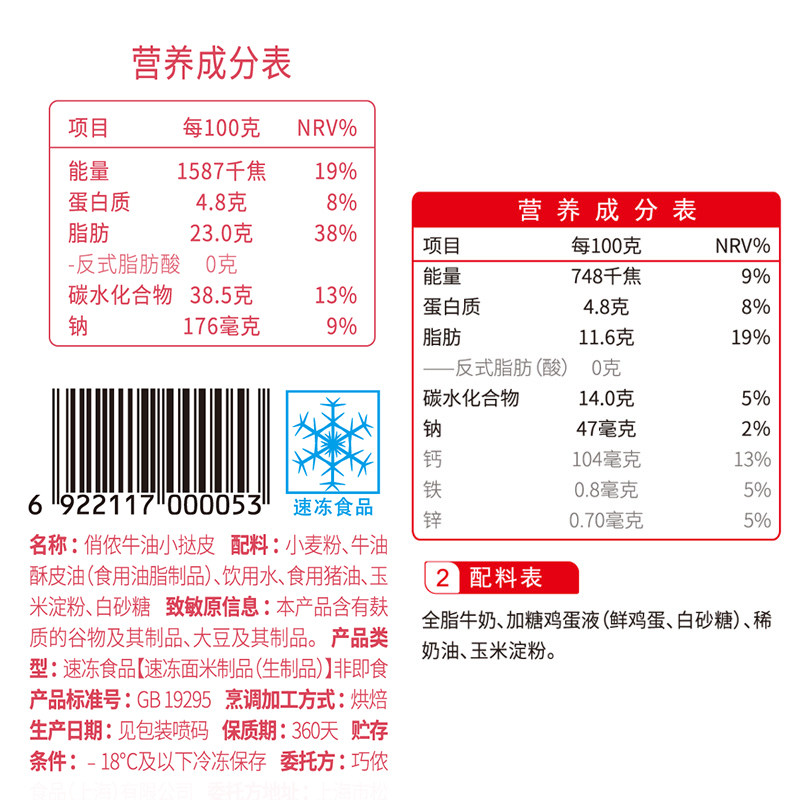 俏侬牛油小蛋挞皮乳脂蛋挞液