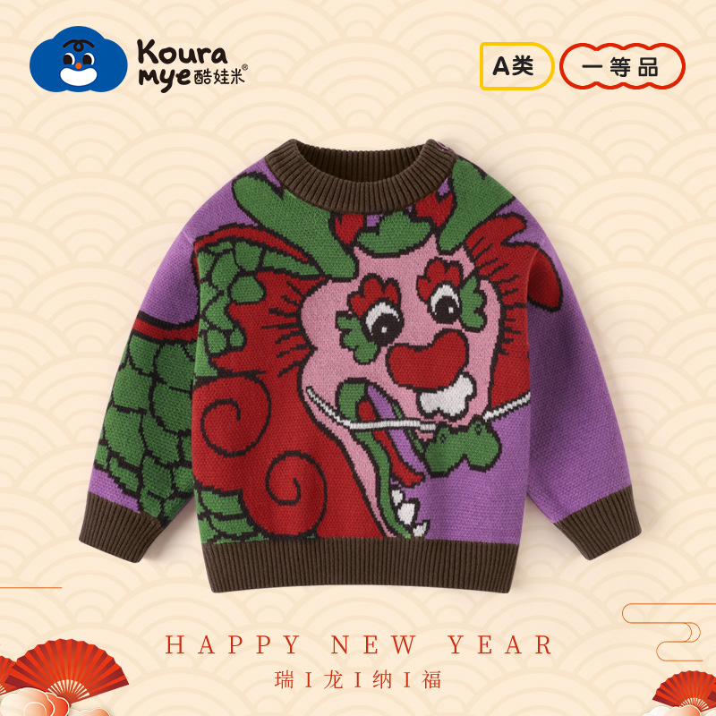 婴儿红色线衣纯棉加厚男女童2024新年儿童限定龙年毛衣宝宝拜年服