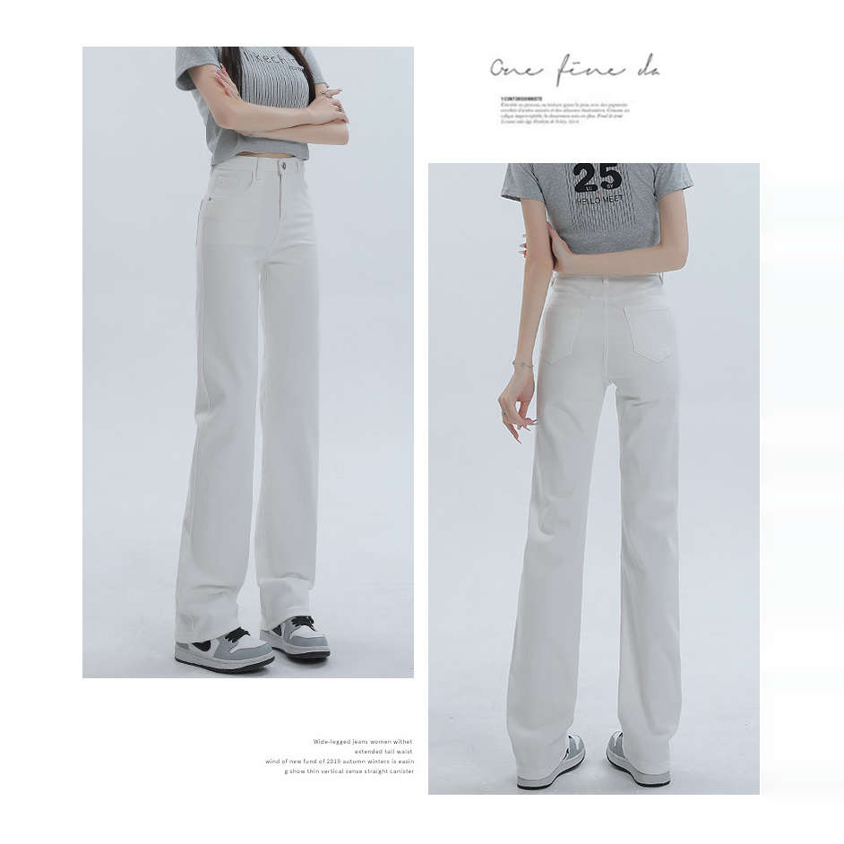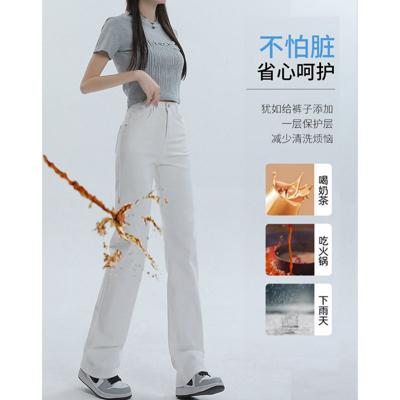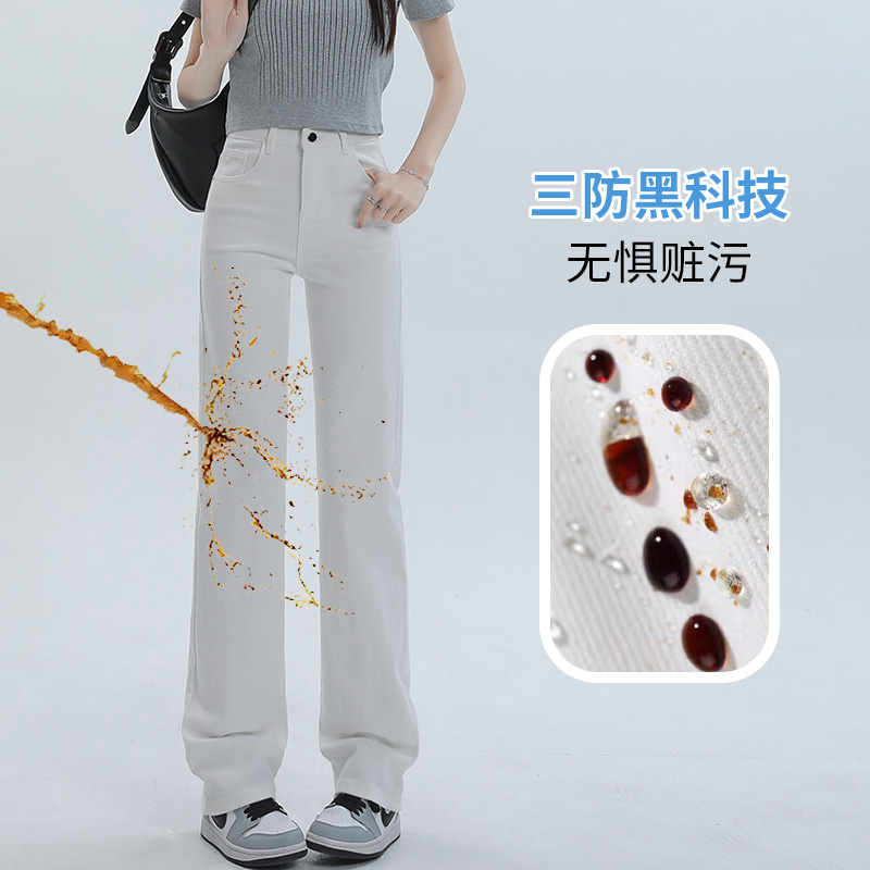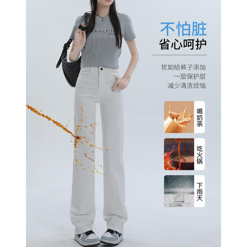 韩都衣舍2025春夏爆款三防白色弹力高腰显瘦窄版阔腿直筒牛仔裤女