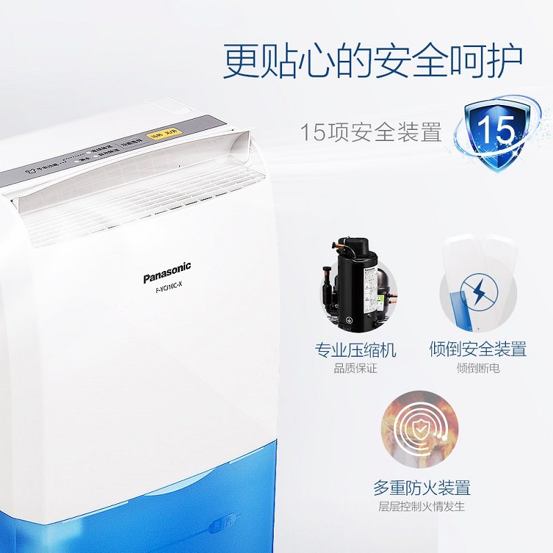 松下除湿机F-YCJ10C-X家用别墅仓库地下室卧室室内静音抽湿器干衣