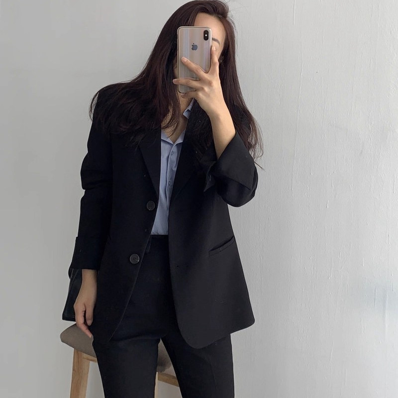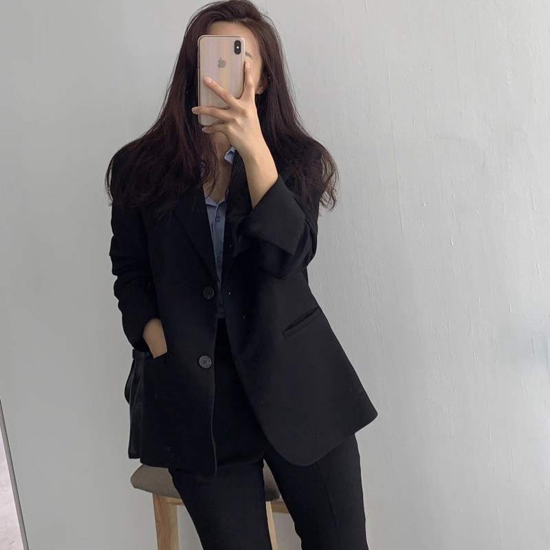 2026新款春秋小西装女套装西装裤休闲气质西服裤子职业装一套黑色