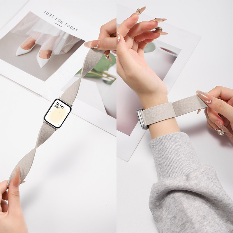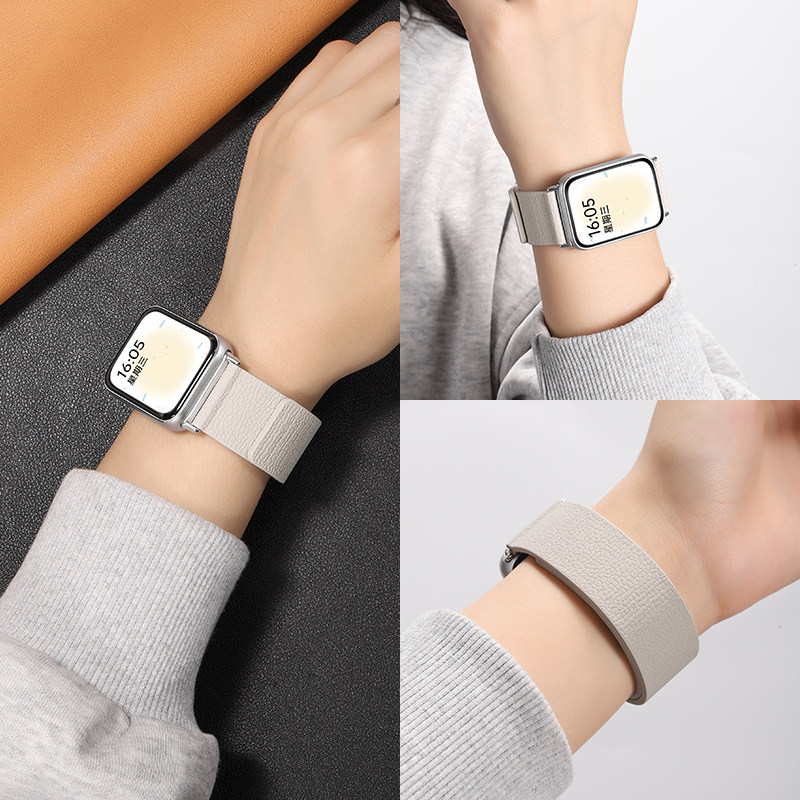 张婧仪同款适用小米手环9pro表带8Pro手表新款红米redmi watch6硅胶5替换腕带4荔枝纹磁吸男智能运动女秋冬款