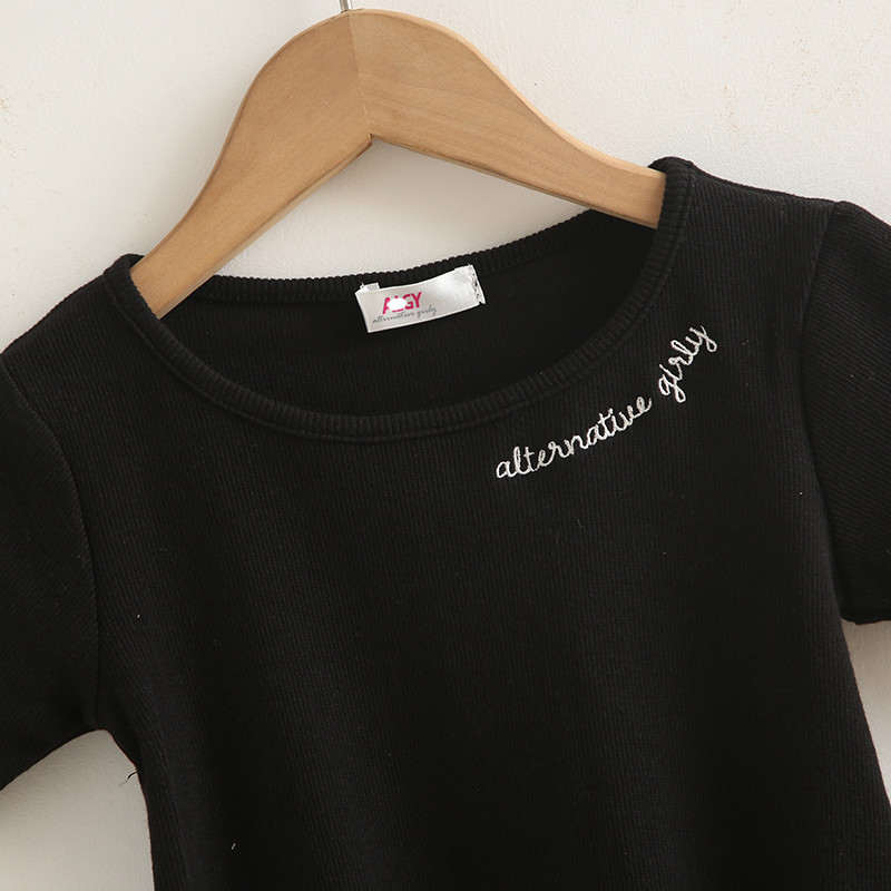 夏季新款童装女童木耳边短袖T恤纯棉夏装洋气上衣字母刺绣儿童