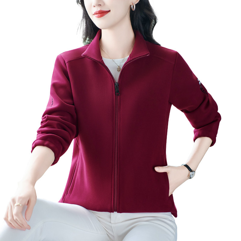 加厚沐丝绒外套女秋冬新款保暖拉链开衫加绒上衣今年流行红色卫衣