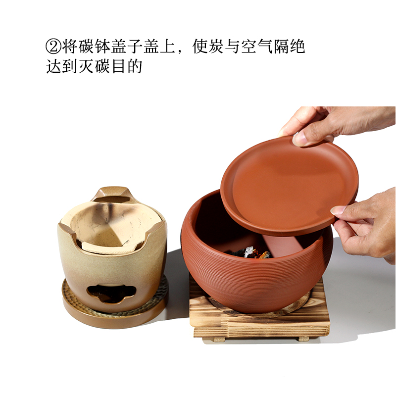 紫砂碳钵粗陶红泥茶洗笔洗煮茶炭炉碳夹龙眼碳缸子盛碳盆灭炭茶器