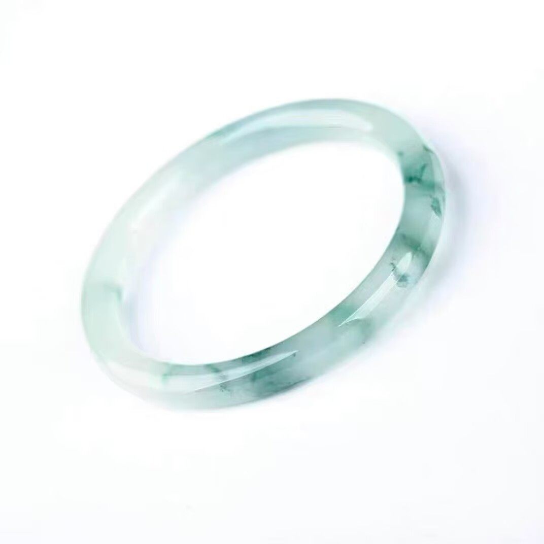 高冰透独龙玉细圆条真玉飘花手镯