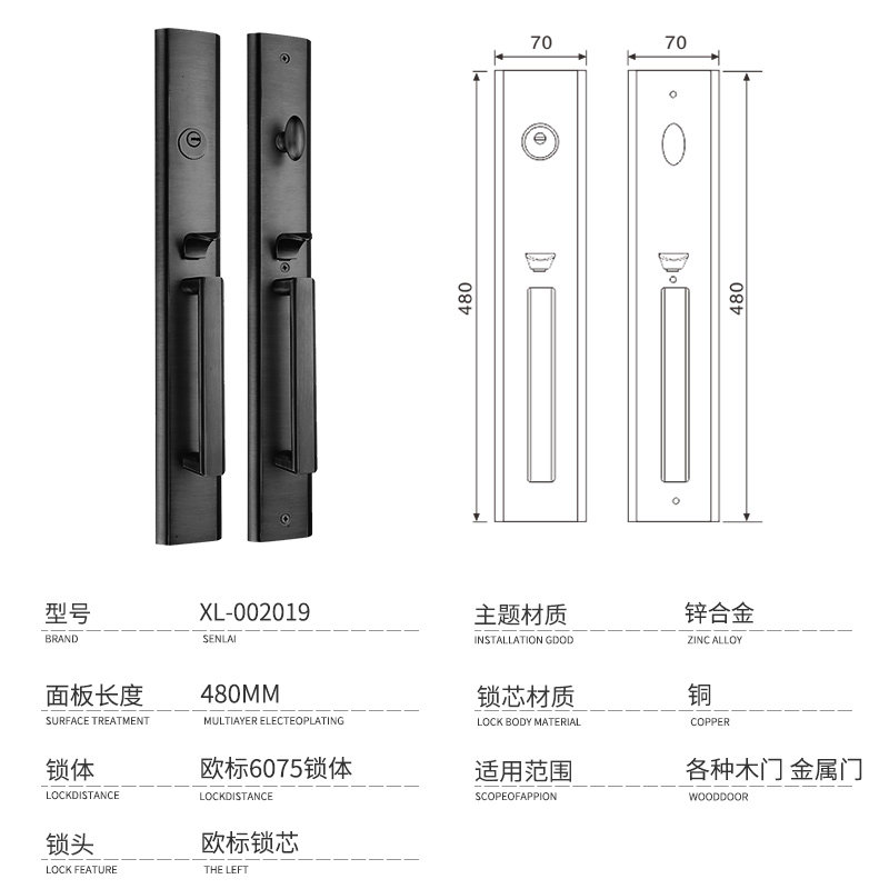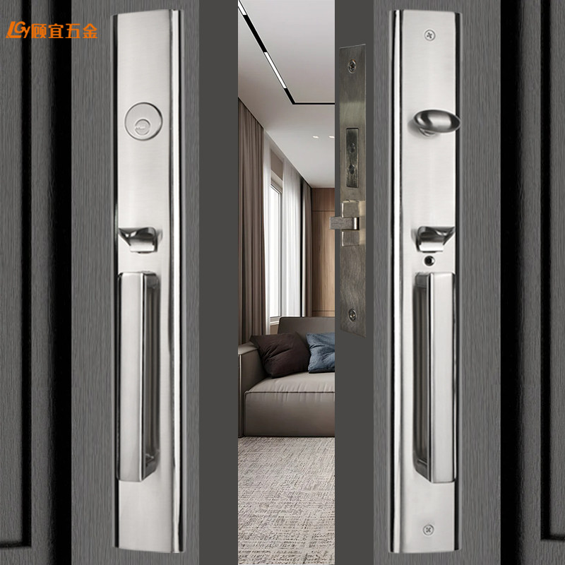 简约极简大门锁会议室对开机械锁庭院别墅入户子母门锁实木双开锁
