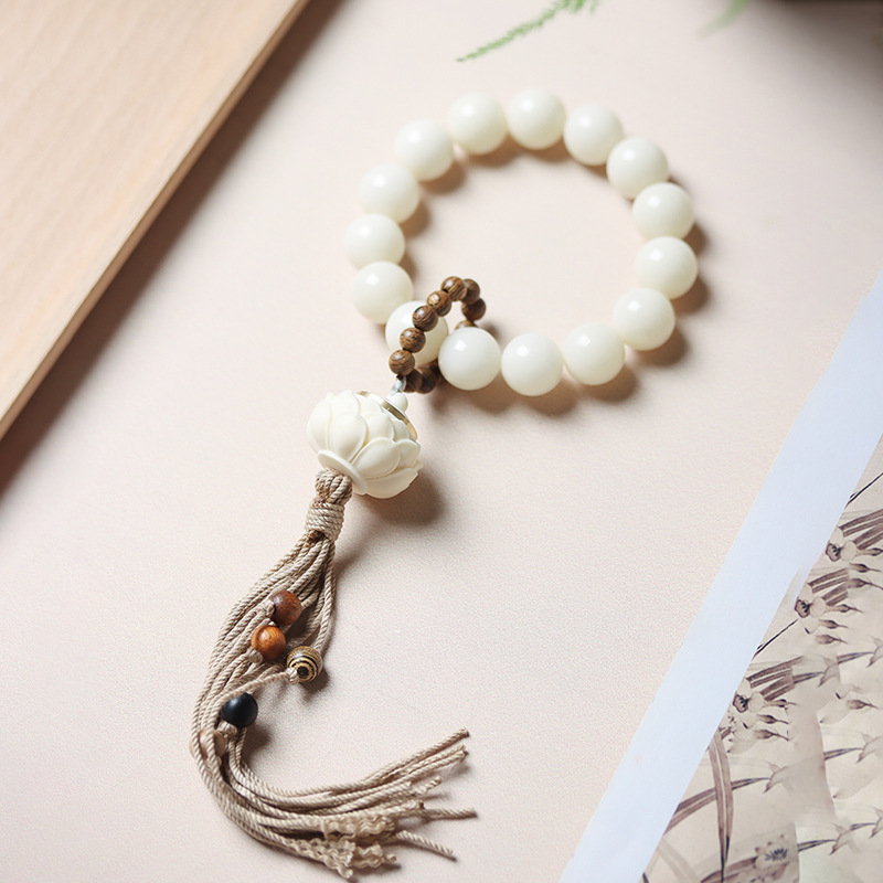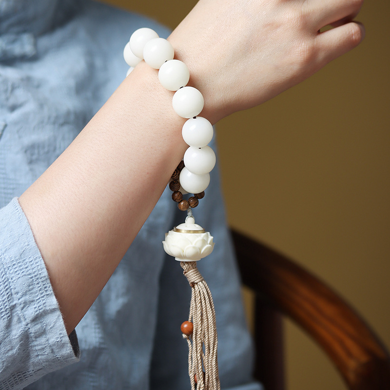 爆款白玉菩提18mm莲花香囊15手持绕指柔学生女文玩菩提根佛珠手链