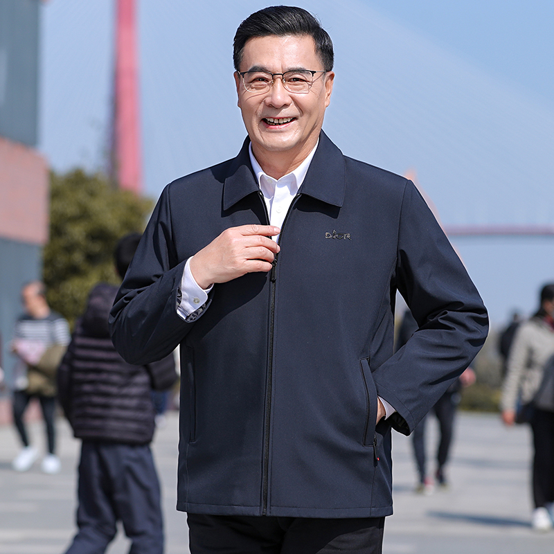 春秋款爸爸夹克男秋装外套男中老年人男装爷爷夹克衫老人男士上衣