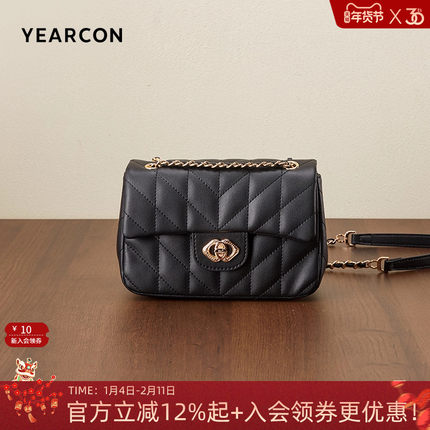 意尔康牛皮女包2025新款女士菱格链条单肩包百搭斜挎包节日礼物