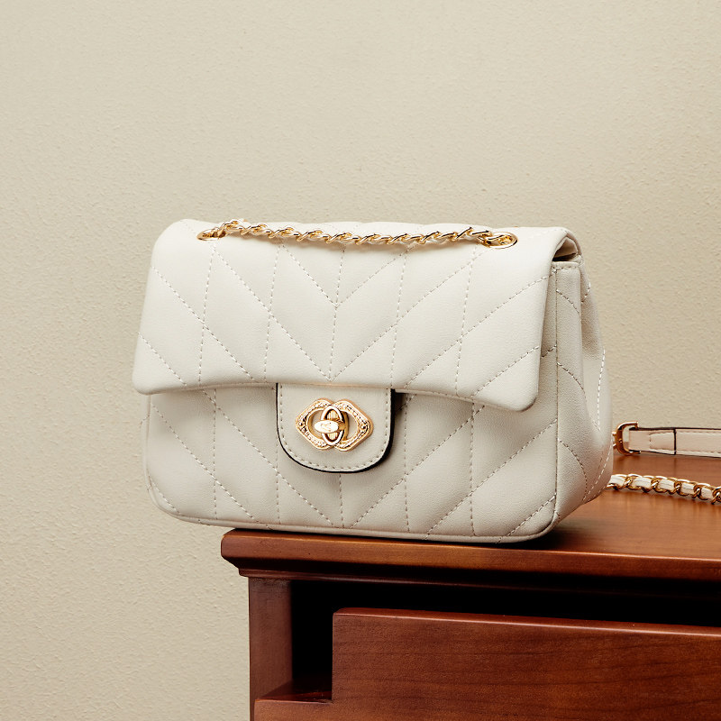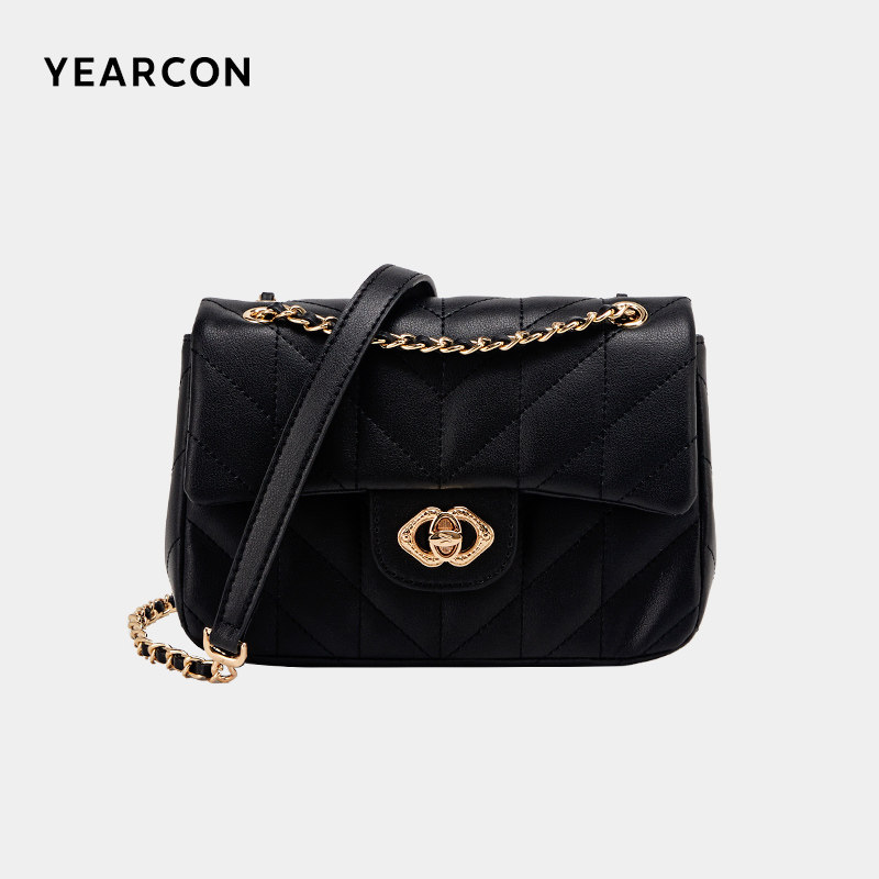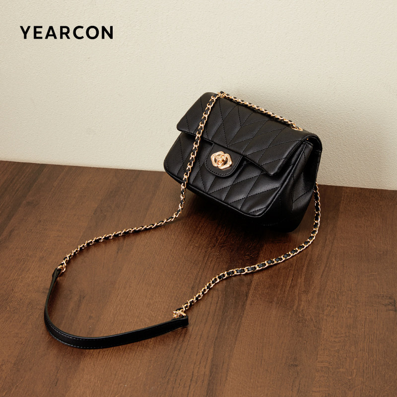单肩斜挎包意尔康女包菱格链条包