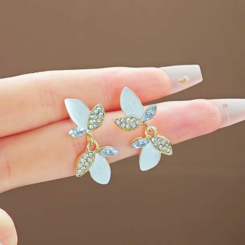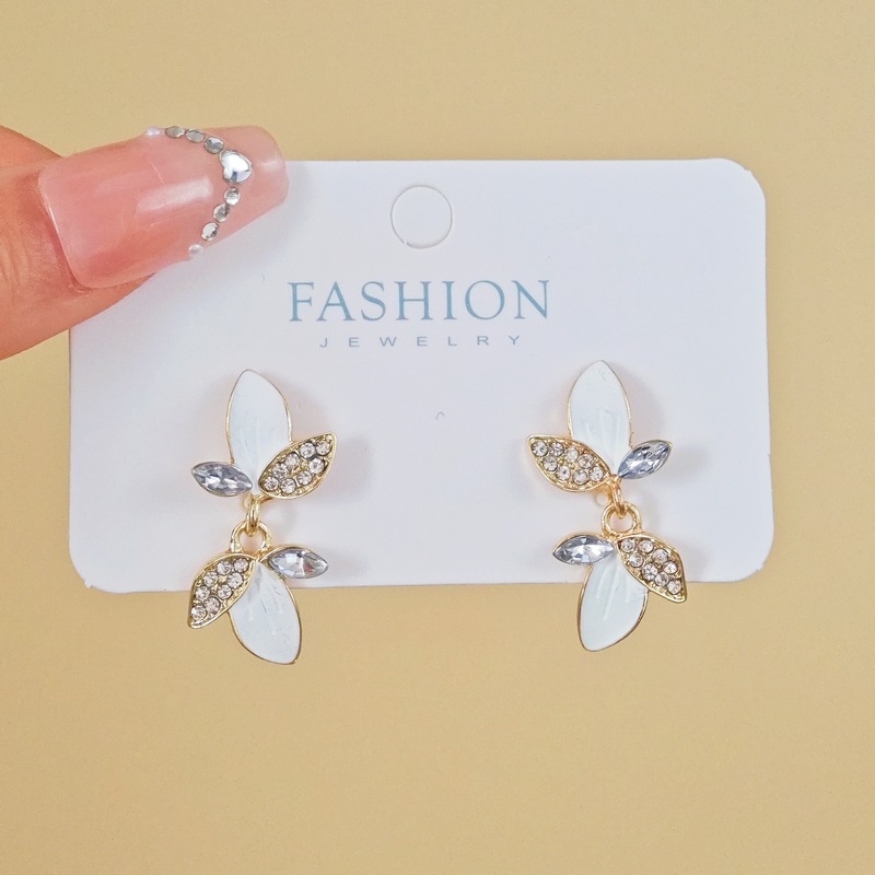 法式镶钻树叶耳环时尚个性白色水钻新款耳钉轻奢小众高级感耳饰女